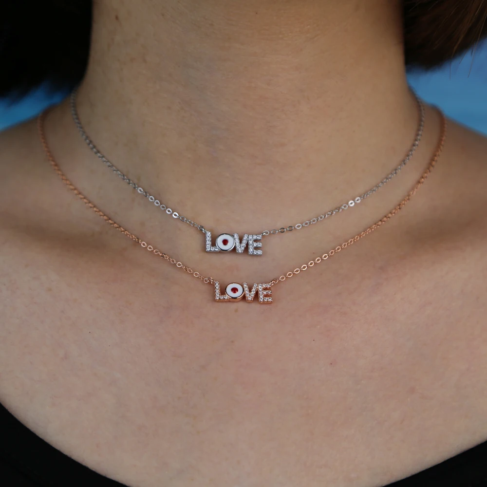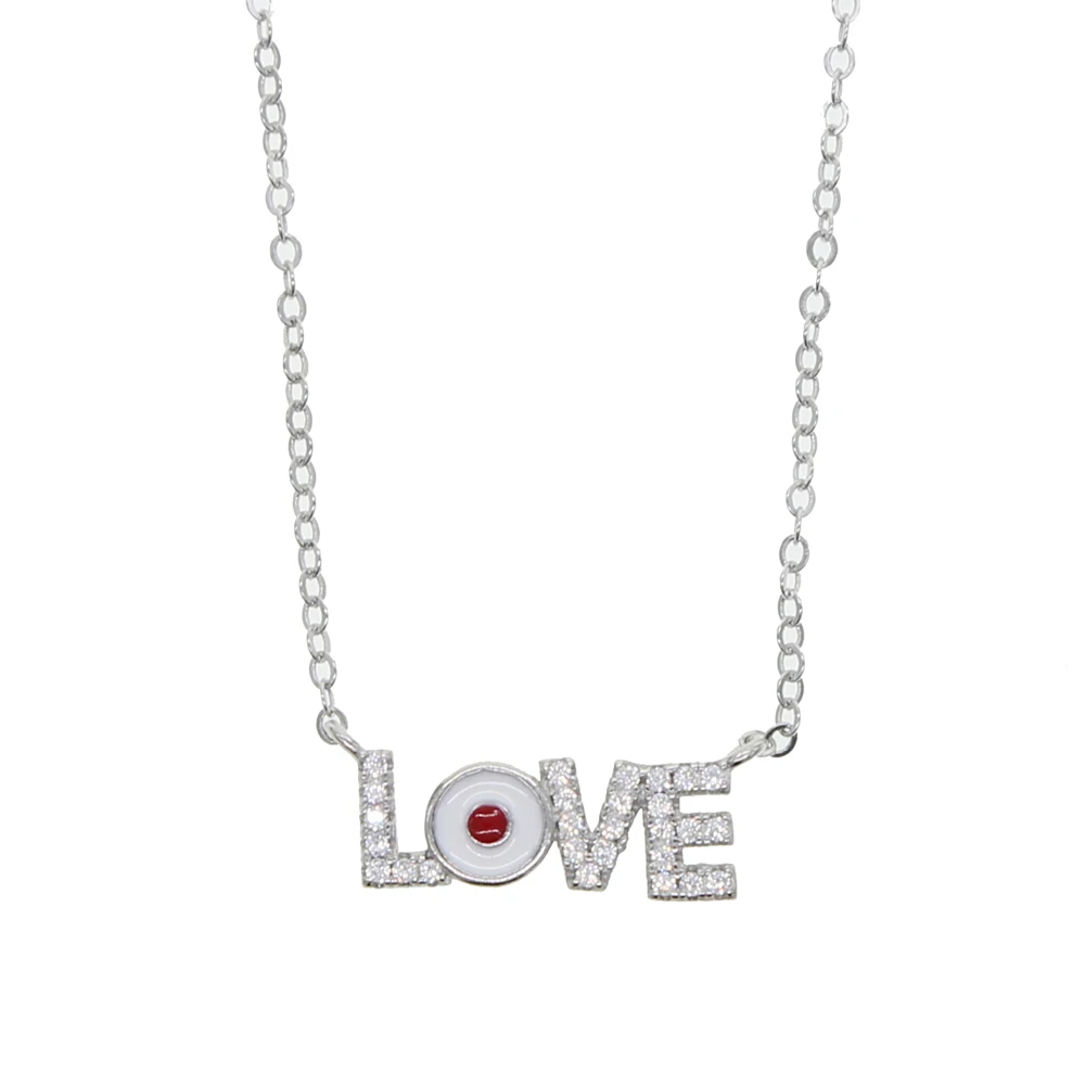 Ожерелье из серебра 925 пробы с надписью love, с белой эмалью, от сглаза