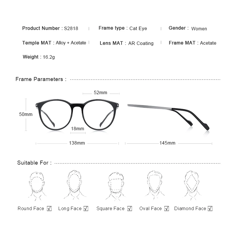 Оправа для очков Женская ацетатная в стиле кошачий глаз, S2620