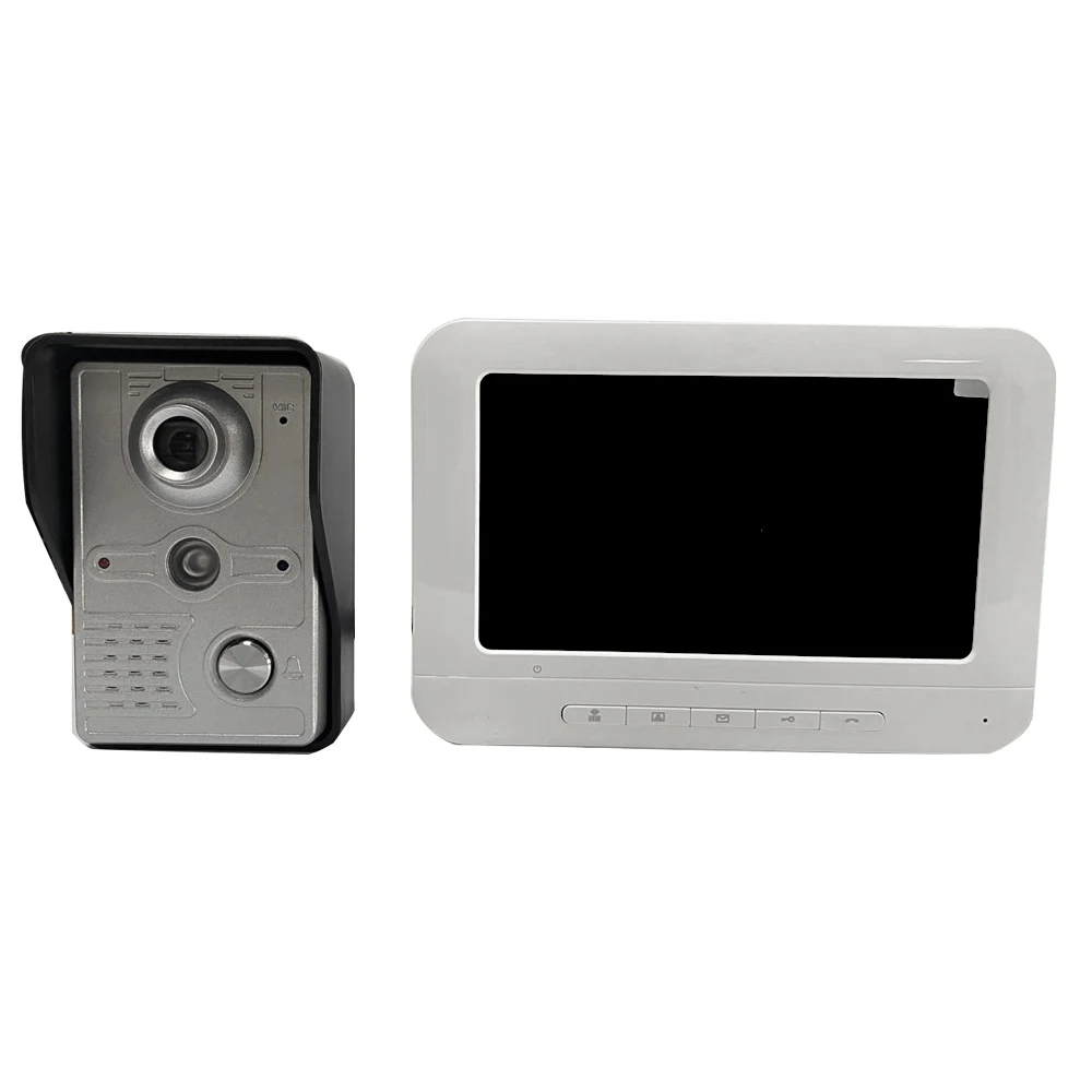 Внутренний блок, модный и роскошный. Небольшой дождь и устойчивость к окислению для наружного блока из прочного алюминиевого сплава. Цветной TFT ЖК-дисплей 7 дюймов без излучения, низкое энергопотребление и высокое разрешение. IR-CUT HD 700TVL камера с ночным видением. Встроенный фильтр IR-Cut обеспечивает улучшенное качество изображения и цвета Функция электроблокировки-управления. Гарнитура громкой связи. Наблюдение за внешней стороной двери. 25 видов дверных звонков. Простая установка самостоятельно с помощью адаптера и кабеля, которые мы предоставляем в этом комплекте.