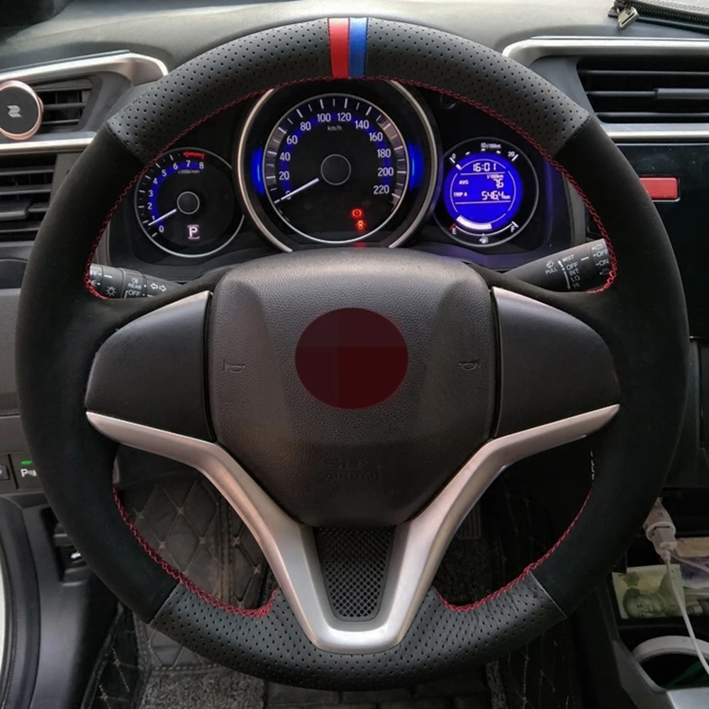 Чехол рулевого колеса автомобиля DIY Ручная строчка, черная натуральная кожа, замша для Honda New Fit City Jazz 2014 2015 HRV 2016