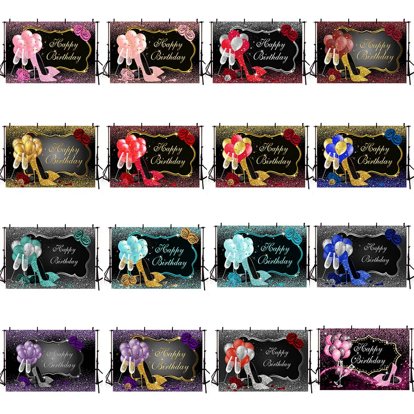 Милый розовый фон для дня рождения блестящие высокие каблуки Шампанское для взрослых женщин День Рождения Декор фотобудка фон на заказ