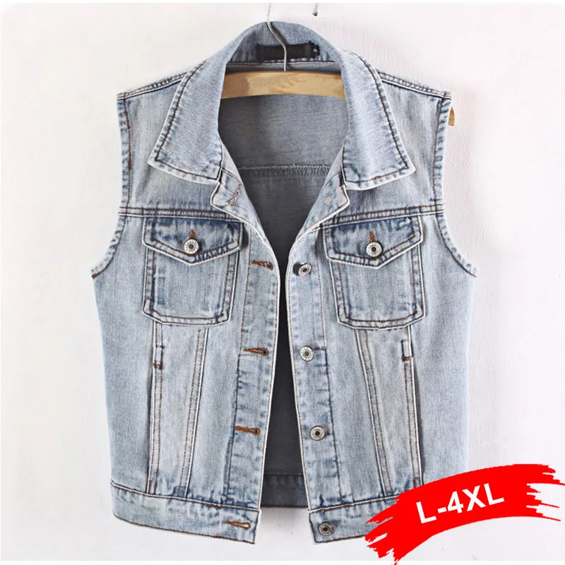 Размера плюс, белый, серый, безрукавный джинсовый жилет, 4xl, 5xl, Летняя короткая приталенная куртка, Женский винтажный однобортный жилет в Корейском стиле