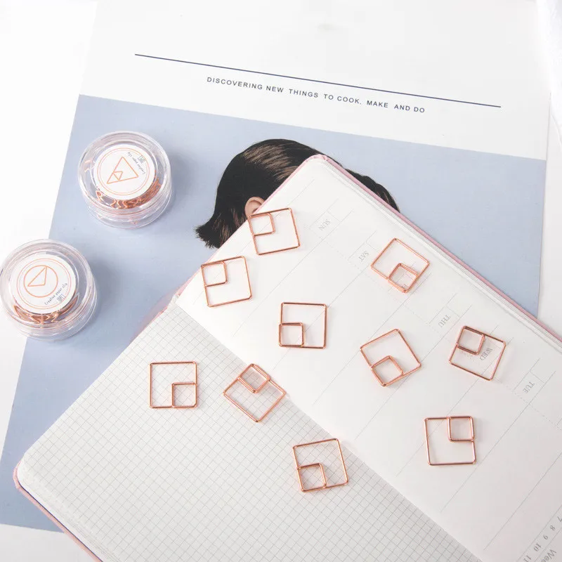Зажимы для бумаги геометрической формы 10 шт.лот, креативное квадратное украшение для стайлинга, офисные аксессуары, зажимы для бумаги, Закладка, офисные принадлежности