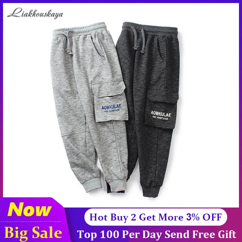 Длинные брюки для мальчиков с карманами и эластичным поясом