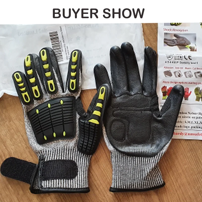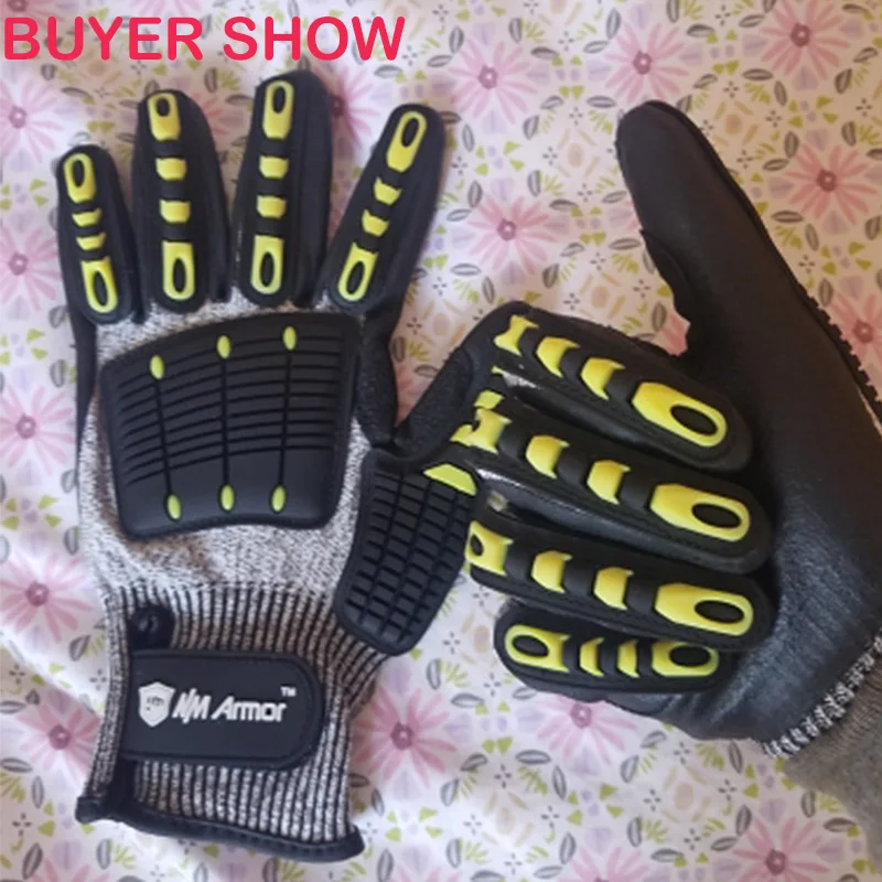 Метрический номер Безопасность перчатки устойчевые срезу анти влияние вибрации масла TPR Безопасность рабочие перчатки с защитой от порезов механика ударопрочный