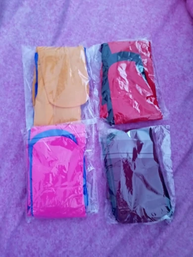 с цветами путаница: 1й раз заказали синий с голубым, пришел оранжевый с зелёным, по спору вернули деньги, 2й раз заказали синий с желтым, пришел фиолетовый с жёлтым (мне кажется, даже красивее), причём, писала продавцу насчёт цвета, он "да-да"... В остальном всё отлично, на высокую девочку 10 лет хорошо
