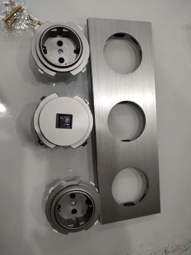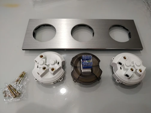 Вся продукция качественная, лицевая панель - настоящий алюминий, довольно массивный. Важный нюанс - под эти розетки и все остальное нужны свои подразетники (есть у продавца), в ОБИ и леруа мерлен таких не найти, поэтому заказывайте сразу (у них размер 82х82 и посадочное расстояние между винтами 60 мм)