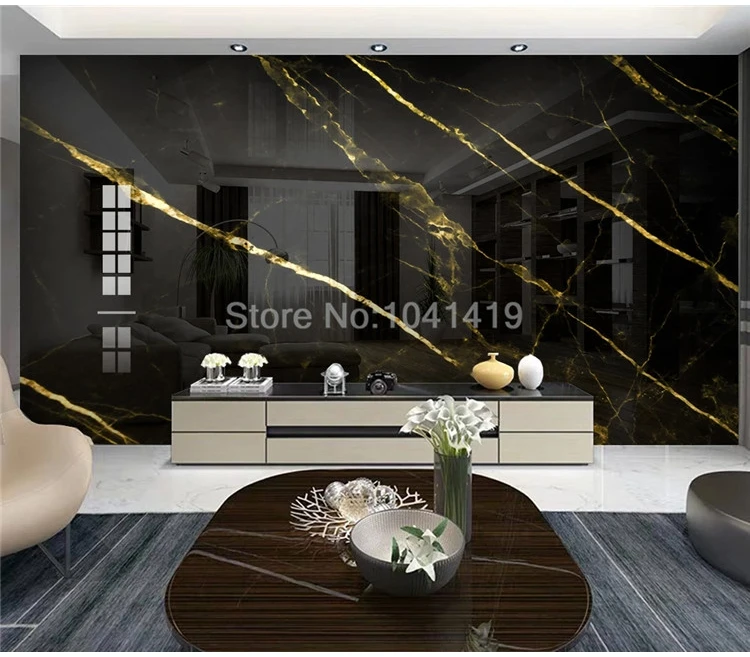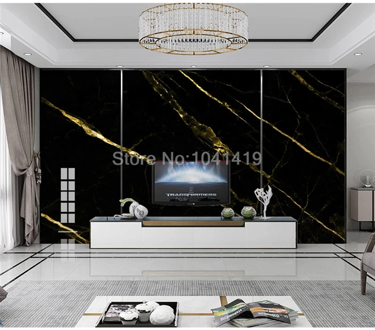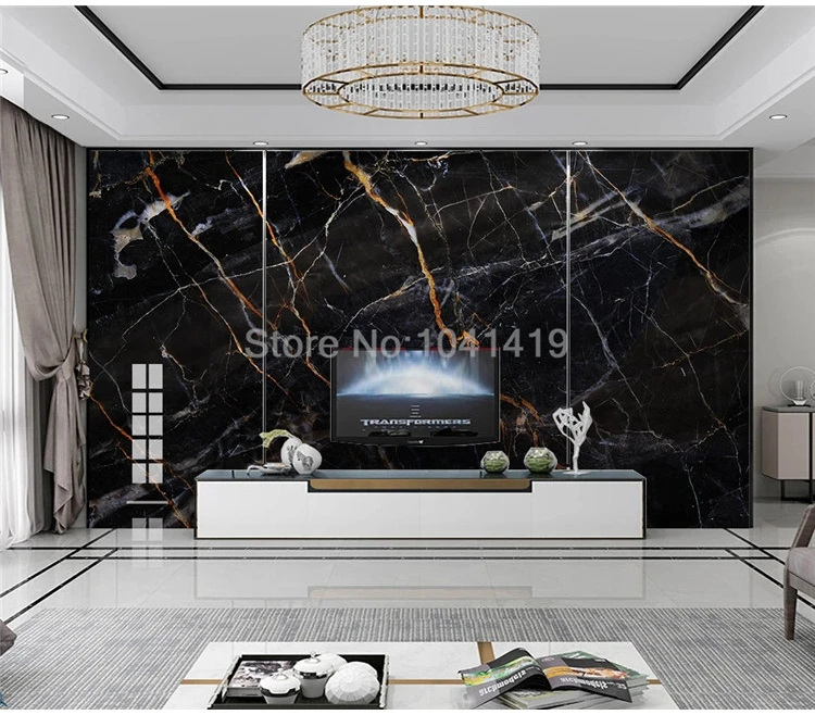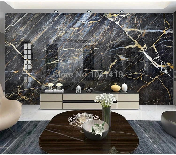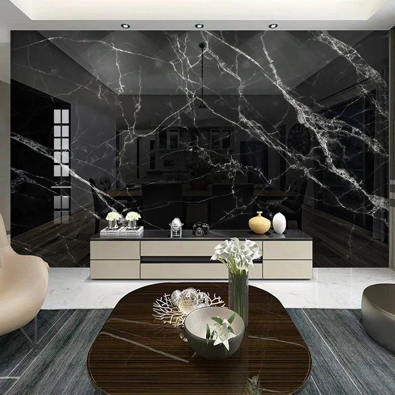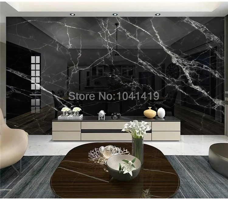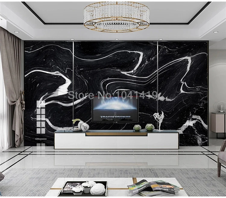 Фото обои современный простой черный и белый мраморный МУРАЛ обоями Гостиная ТВ диван абстрактная живопись Настенная живопись Домашний декор