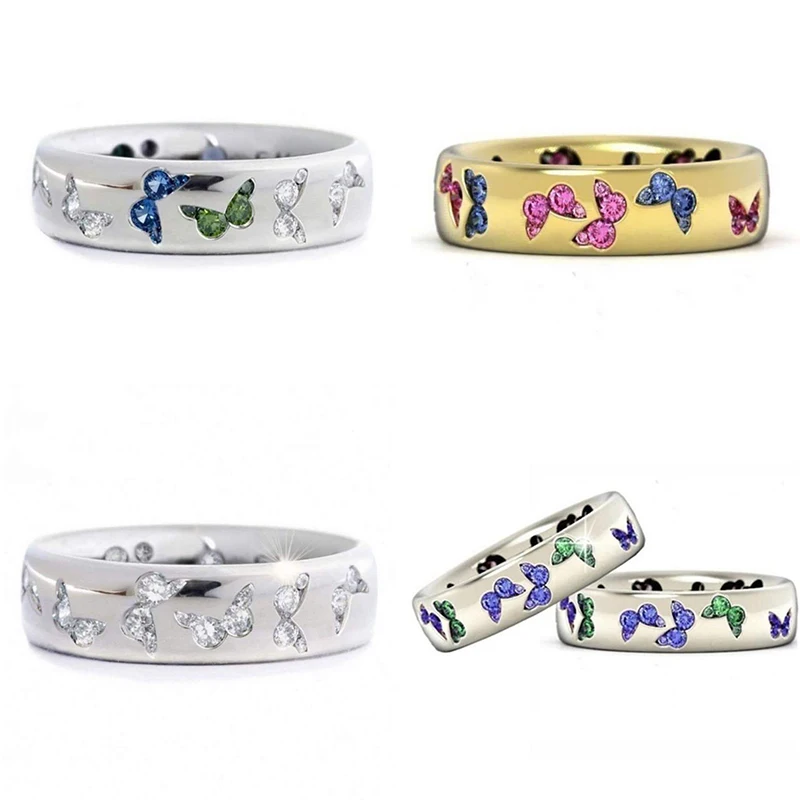 Кольцо-бабочка с цирконием женское, разноцветное, размер 6, 7, 8, 9, 10, 11, 1 шт., 4 цвета, Подарочная бижутерия
