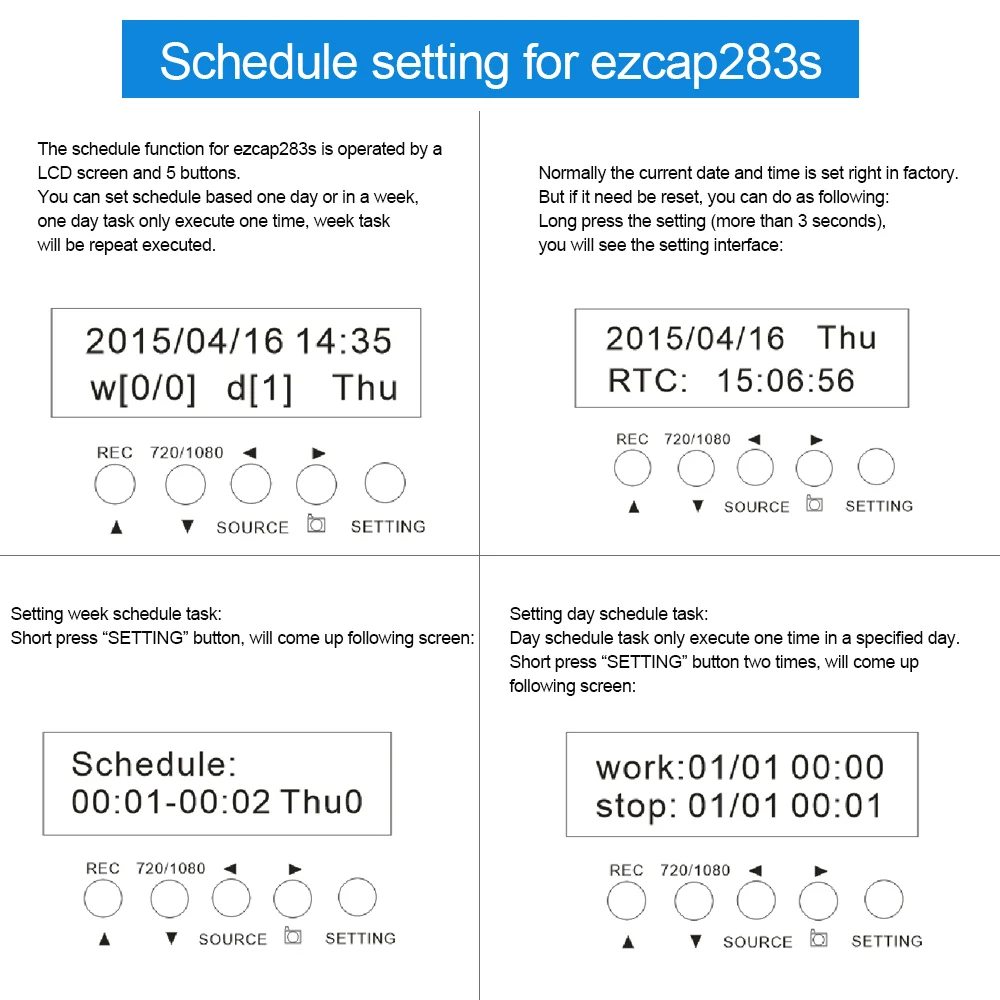 * С 1080P HD проходом, вы можете играть в HD геймплей, когда вы его записываете. Вы можете установить время записи будущего с функцией записи расписания.