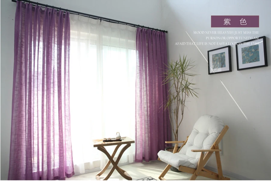 Фиолетовые шторы из хлопка и льна, однотонные тюлевые шторы в современном стиле для гостиной, белые прозрачные оконные шторы для спальни, MY042 #30