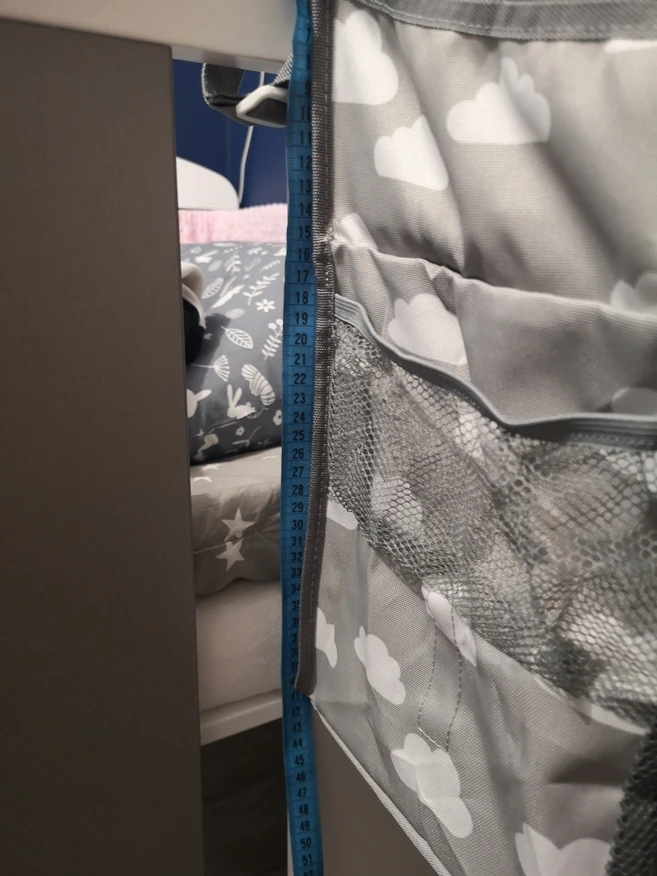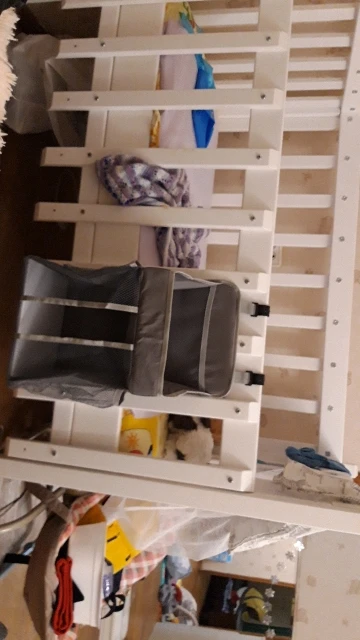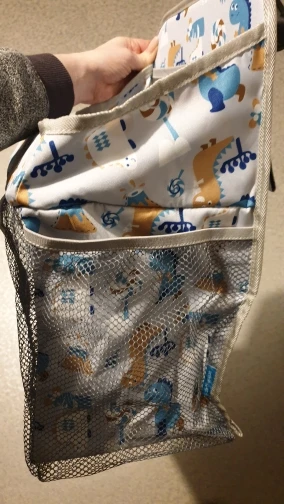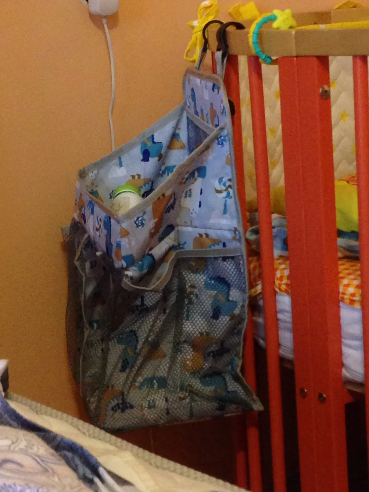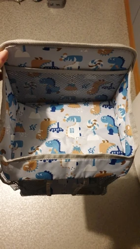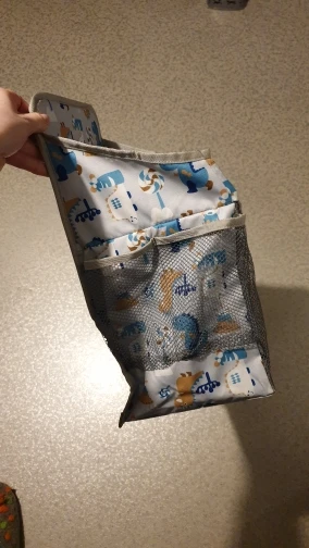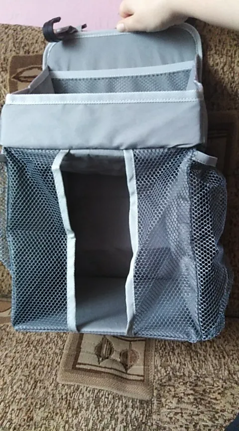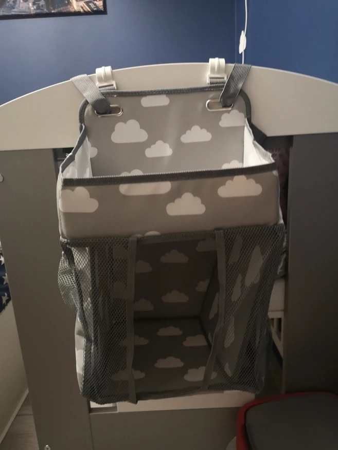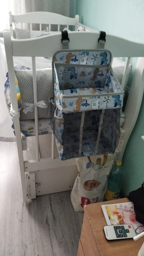 Суперприспособление! Кажется, подойдёт для любого типа кроватки. Закрепить и на крючки, и на липучки. Основания твердые, плотные. Нижнее основание прошито, готово. Верхнее нужно вдевать самим, но это не проблема: там есть специальный кармашек, всё очень удобно вдевается. Смотрится круто и аккуратно. Занимает не очень много места, но вместительный. Можно хранить м памперсы, и одежду малыша, и лекарства, и салфетки влажные. в общем всё, что должно быть под рукой. Расцветка с динозаврами просто огонь!!