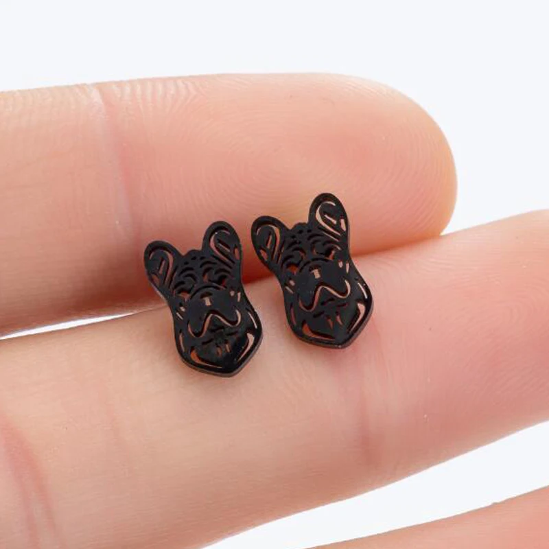 Милые женские серьги в виде собачьей лапы, черные серьги-гвоздики с французским бульдогом, модные ювелирные украшения для чихуахуа