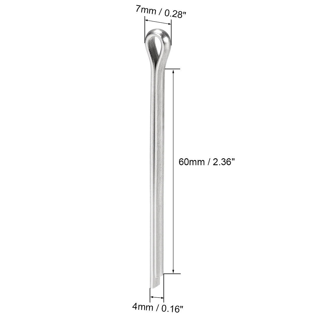 Шплинт uxcell, 15 шт., 4 мм x 60 мм, из нержавеющей стали 304, с 2 зубцами, серебристого цвета