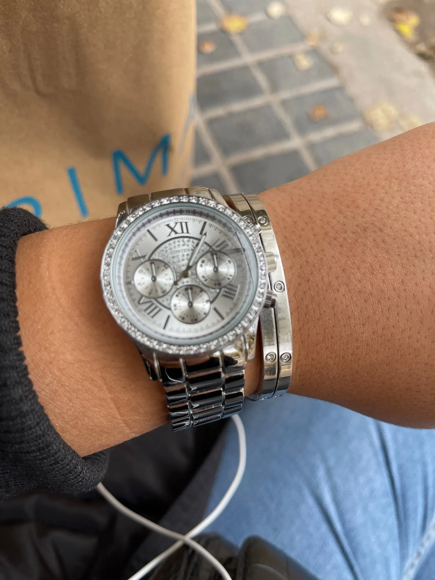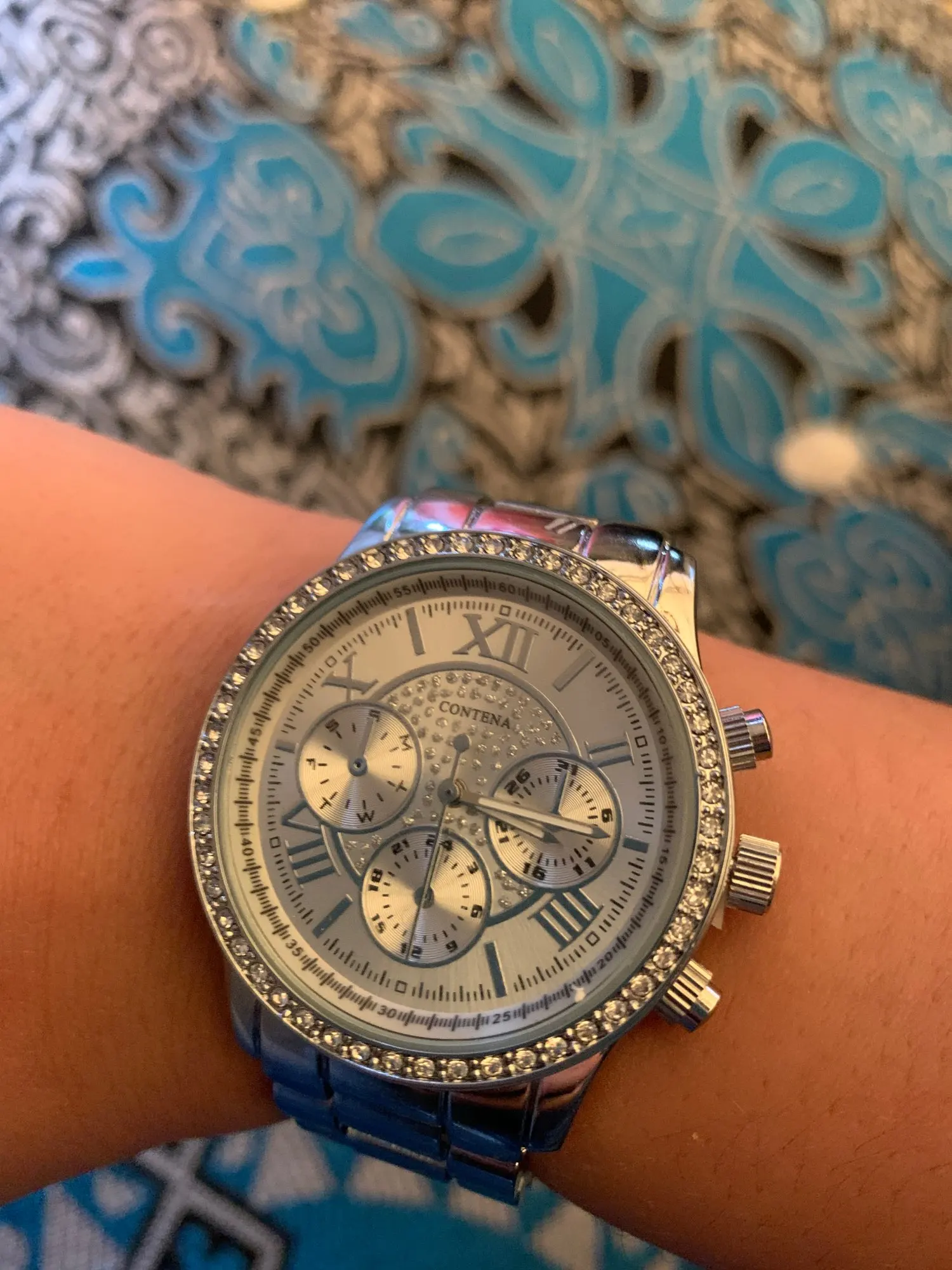 Женские Серебристые часы с бриллиантами, из нержавеющей стали
