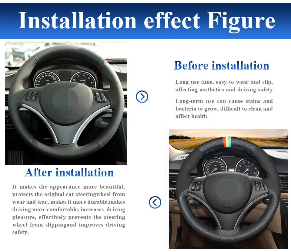 Ручной пошив анти-скольжение чехол рулевого колеса автомобиля для B...