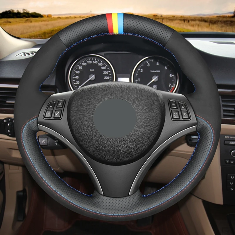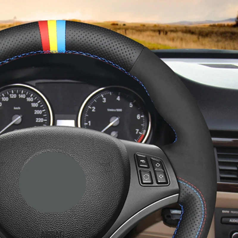 Ручной работы черная замша чехол рулевого колеса автомобиля для BMW...
