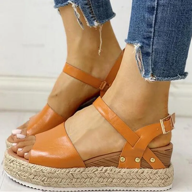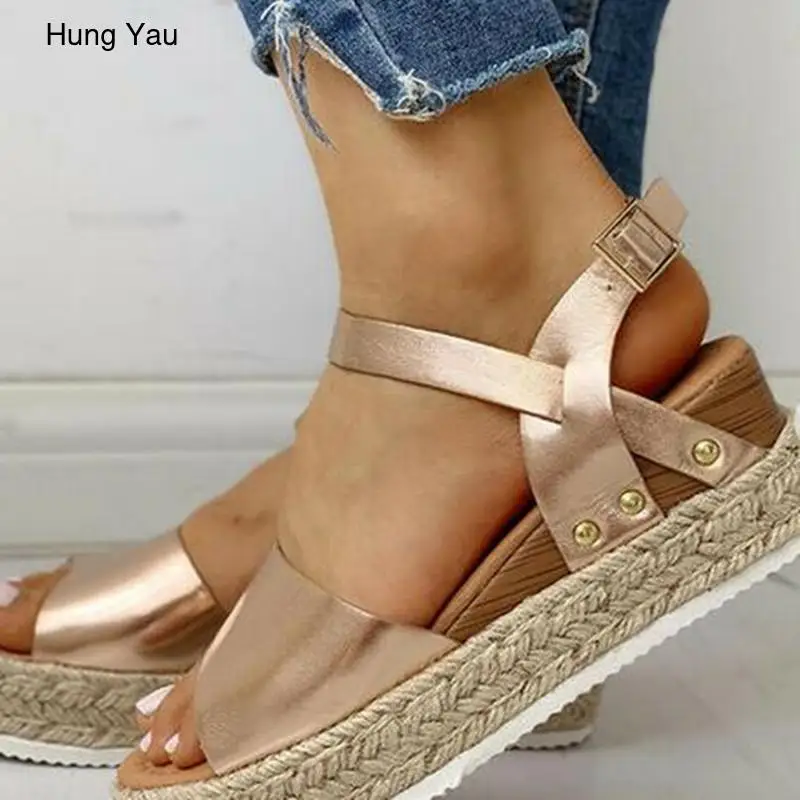 Сандалии женские на платформе, удобные босоножки на танкетке, соломенные шлепанцы, водонепроницаемая летняя обувь, Размеры 35-43