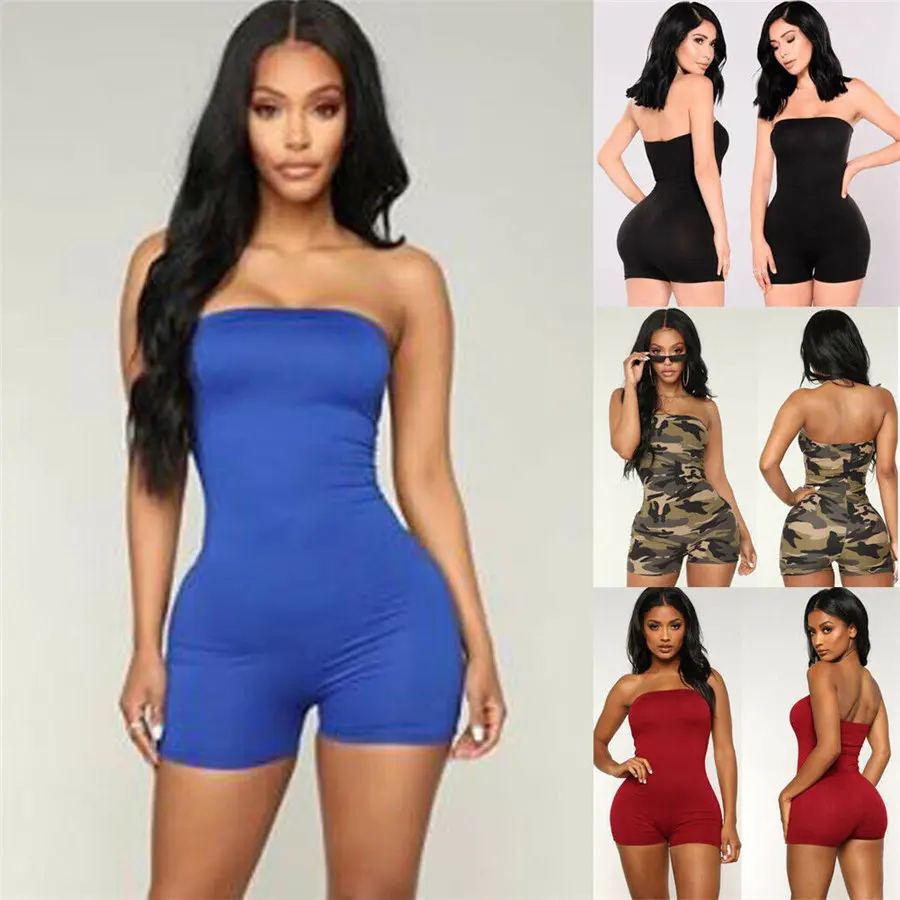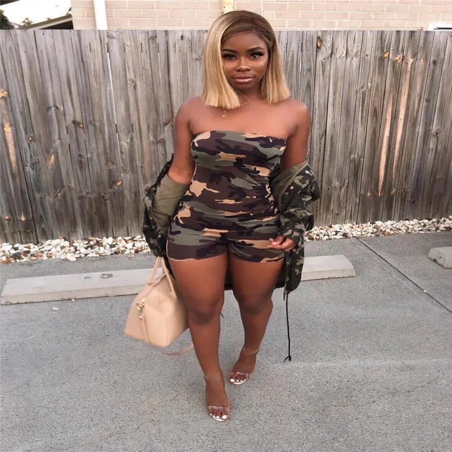 Женский летний Боди, однотонный/камуфляж, без рукавов, с открытыми плечами, облегающий наряд, короткие штаны, пуловер, комбинезон