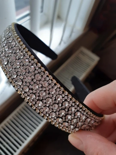 Невероятно красивый обруч! Тот случай, когда в жизни лучше, чем на картинке. Качественно сделан, сверкает, нигде ничего не торчит, выглядит великолепно. Внутри бархат, благодаря чему хорошо держится на волосах и не путается. 16.01 сделан был заказ, 11.02 пришел в Киев по новой почте. Очень красивая вещь, не давит, удобно, и выглядит роскошно.