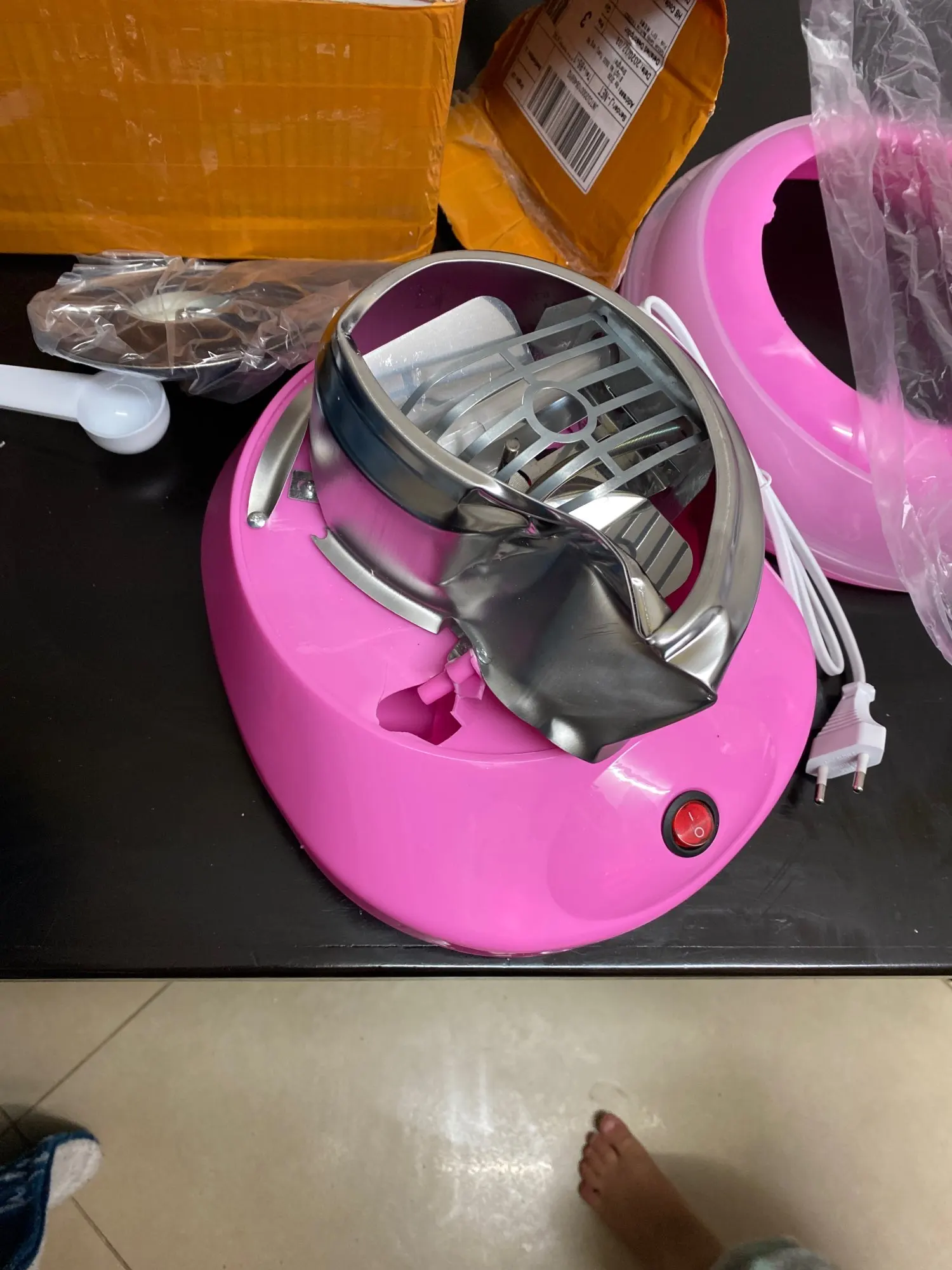 Дешевая, более быстрая доставка, чем ожидалось. Отправка из Китая в Норвегия. Совершенно не лучший производитель хлопковых конфет, но это забавный гаджет для смеха! :-) Не ожидайте, что это сделает большое количество хлопковых конфет, это медленный производитель. Круглый пластик, который прикрепляется к конфетам, является маленьким и слишком близким к нагревательному элементу, что делает конфеты из хлопка плавкими, А также делает его компактным, потому что он плавится на палке во время рулона! И вы должны держать его рядом с нагревательным элементом, чтобы иметь возможность взять ватные конфеты. Я предлагаю сделать еще один чехол. Вырежьте отверстие в большой пластиковой миске или что-то еще и Наденьте на нее. Это сделает ваши эксперименты намного лучше! Если стороны находятся дальше от нагревательного элемента, тогда чаша со склада вам подойдет! Но за эти деньги это забавная Маленькая вещь! Это не приведёт к детской вечеринке по случаю Дня рождения или чему-либо другому, так как она производит медленно.