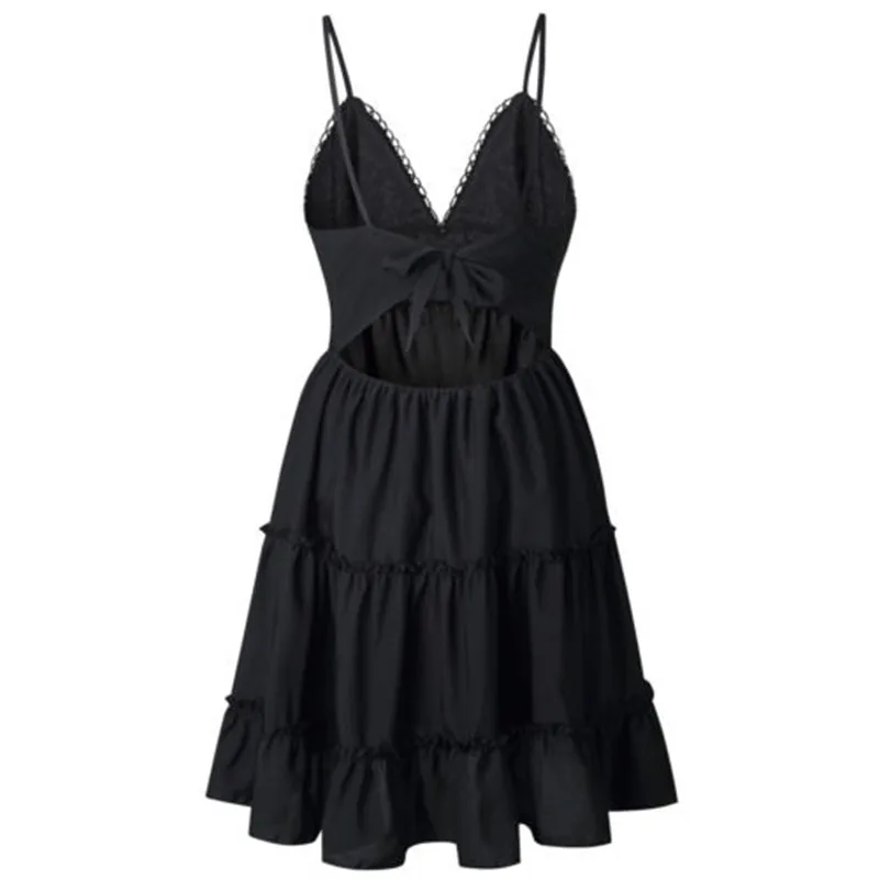 Платье женское пляжное с бантом и открытой спиной, пикантное Белое Мини-Платье с V-образным вырезом, без рукавов, с оборками, на лето