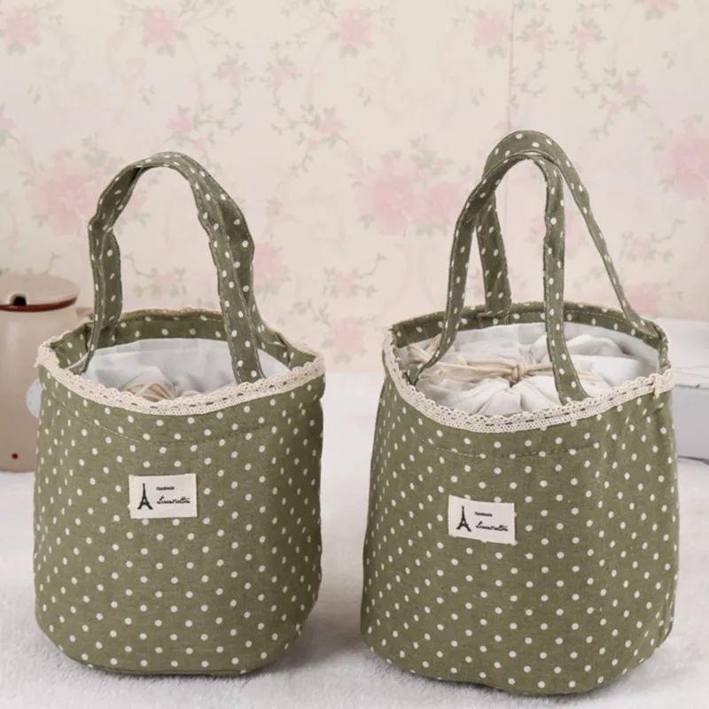 1 шт., Сумки для обеда с рисунком в горошек, термоизоляционные сумки-холодильники, женские детские сумки для обеда, сумка для контейнеров с фруктами, сумки с узорами, холст