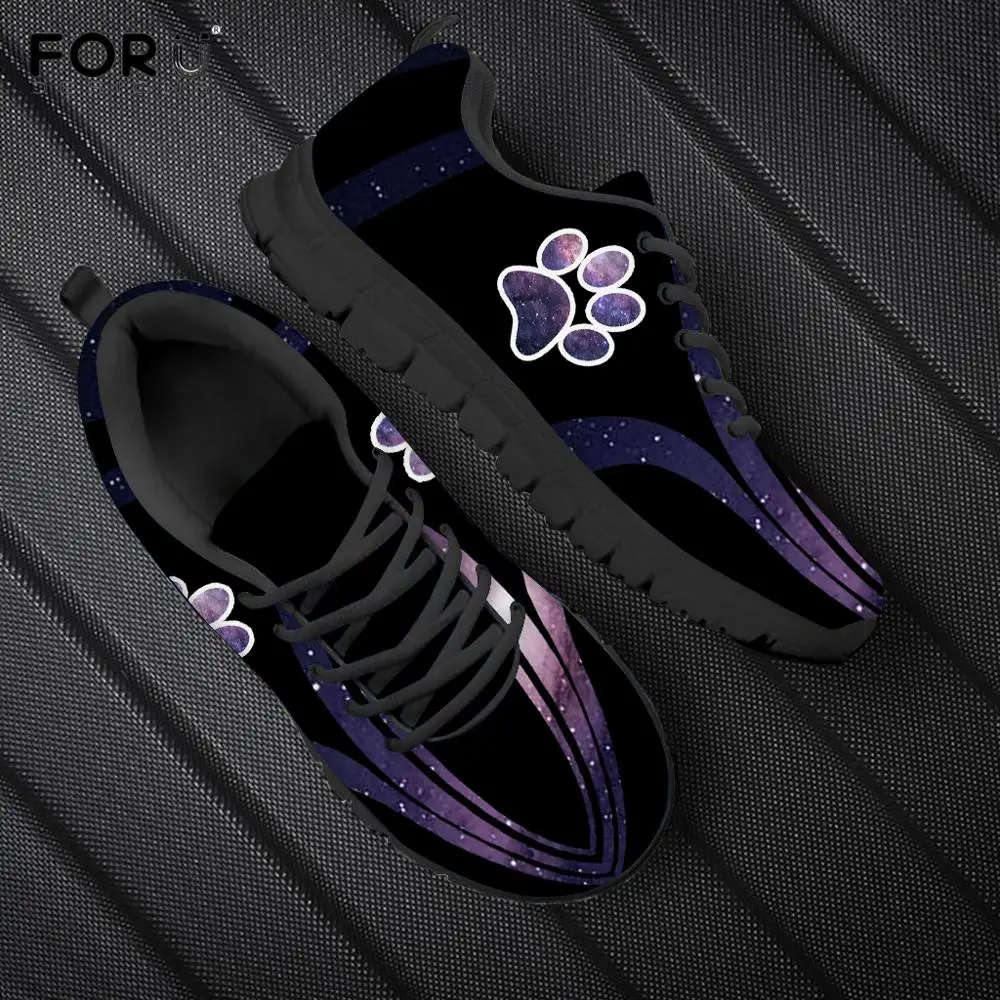 Кроссовки женские FORUDESIGNS, сетчатые, с принтом в виде Галактики, собаки, лапы, сердца, дышащие, для весны и осени