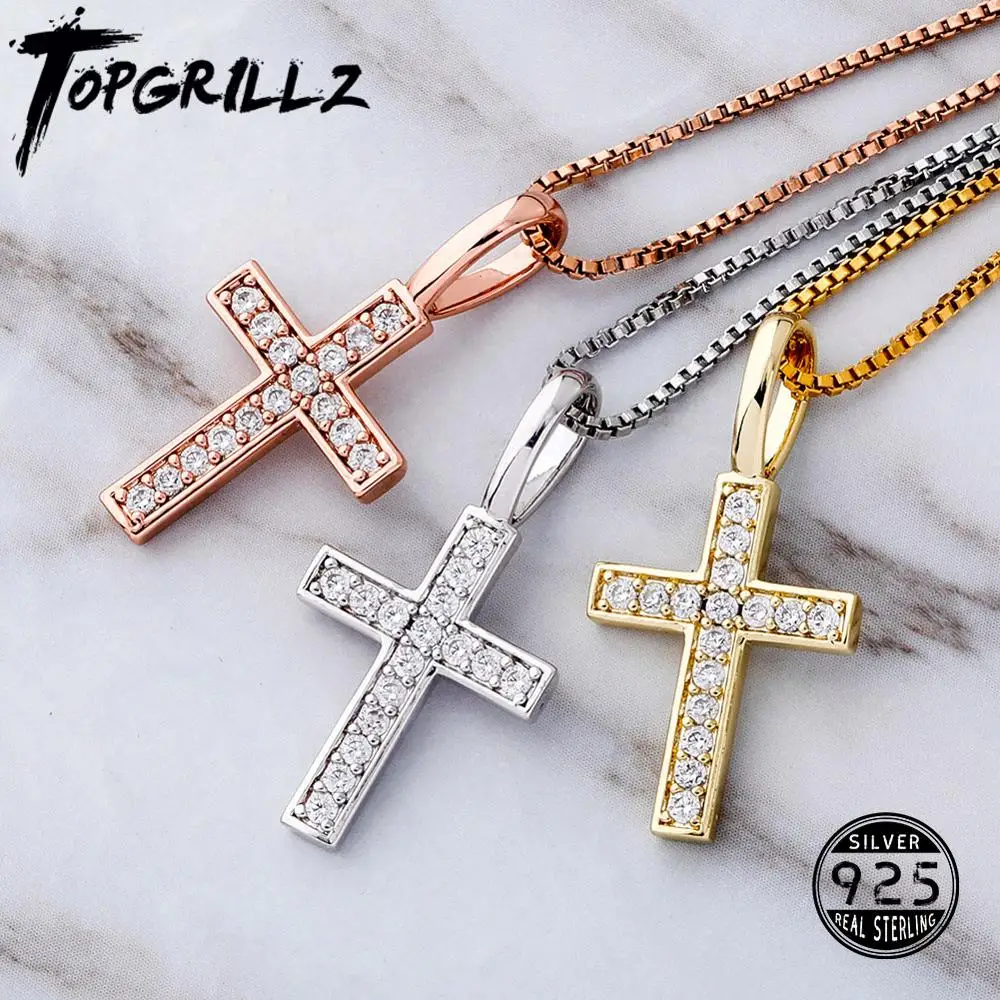TOPGRILLZ подвеска в виде креста из стерлингового серебра 925 пробы, Золотая, серебряная, розовая, золотая, модные ювелирные украшения в стиле хип-хоп