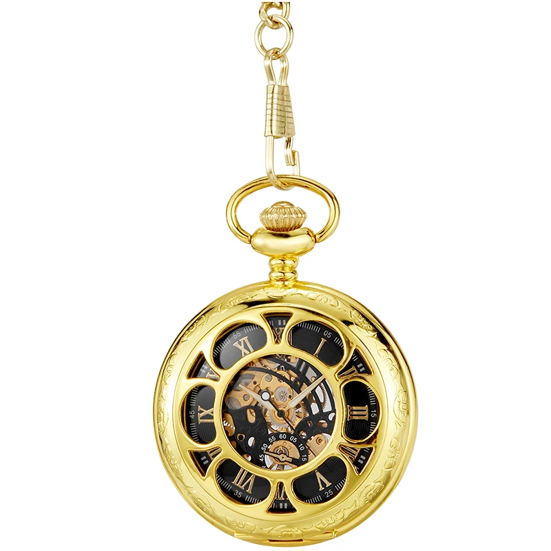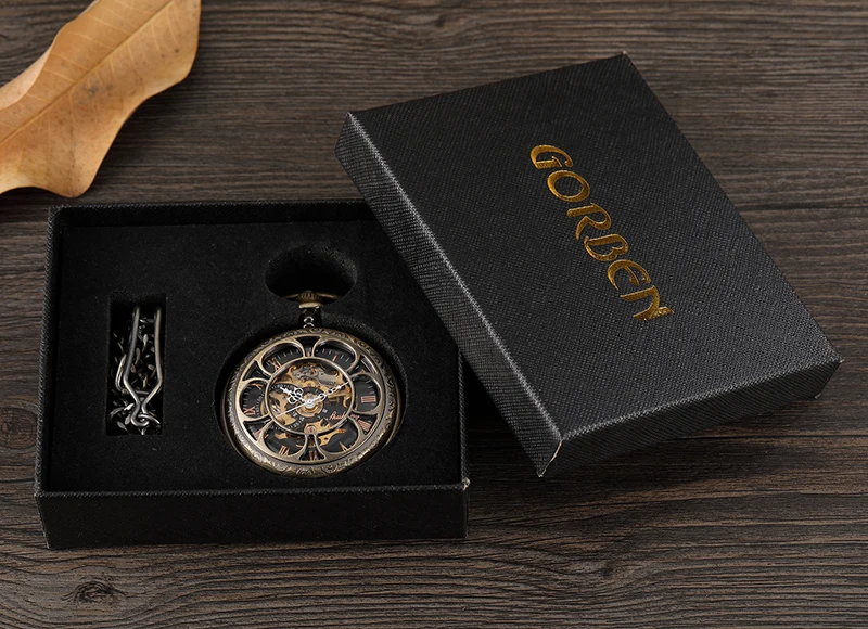 Часы наручные мужские механические, бронзовые карманные, с циферблатом и римскими цифрами, с откидной крышкой, с цепочкой-брелком, подарочная коробка