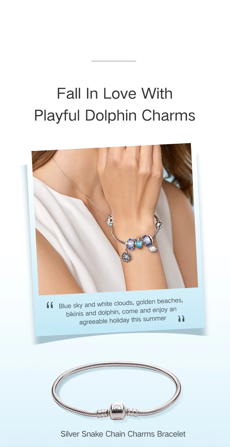 Шарм очень красивый, просто завораживает своей изящностью, глубиной, с бирюзовой основой, серебристыми вкраплениями и четким очертаниям обнимающего его дельфинчика из серебра. Если честно, то никакими фото и видео не передать красоту этого шарма, в реальности он круче. На шарме имеется проба 925, название бренда, изготовлен аккуратно -- никаких царапин, помутнений и прочих изъянов не обнаружено. Украшение приехало в красивой упаковке с названиями бренда на коробке, конверте с открыткой, в которой приятные пожелания, описание изделия, советы по уходу, адреса страниц магазина в соцсетях и ссылка на купон в виде QR-кодов; конверт с салфеткой для ухода за изделием; подарочный пакет. Сама бусина была покрыта защитной пленкой и помещена в пластиковый пакетик, на котором штрих код, проба и тд. Очень приятно распаковывать такую посылку, Доставка в е Украину 22 дня