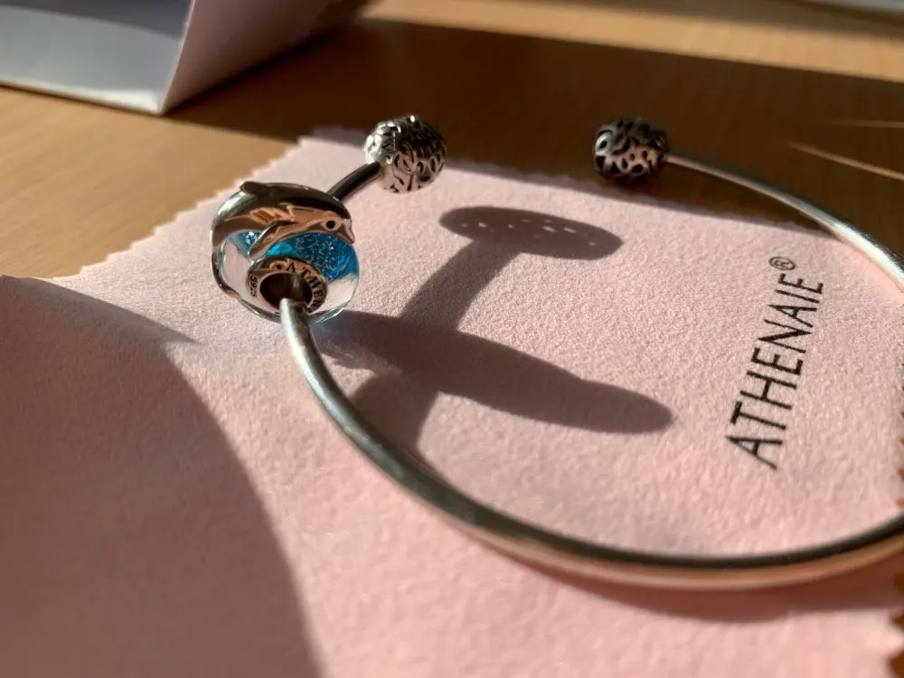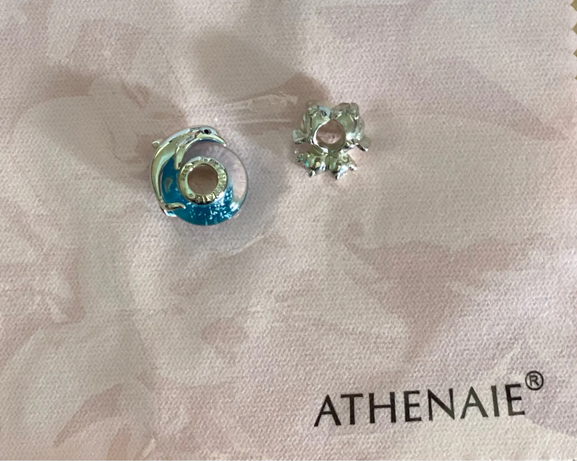Видео на моем канале ютуб: Zarina_Itao Шарм в морской тематике в сине-бирюзовом цвете с дельфином Сбоку присутствует проба 925 и название бренда Все предыдущие бусины от ATHENAIE до сих пор как новые. Шарм, как и все предыдущие украшения из этого магазина, пришел с подарочным пакетом, в красивой коробочке и отдельном пакетике с защитой от окислення . Также положили салфетку для протирки. Срок доставки : 17 дней, трек номер отслеживался! Украшение мне очень понравилось, ничем не уступает Pandora, только дешевле! Буду заказывать здесь еще!