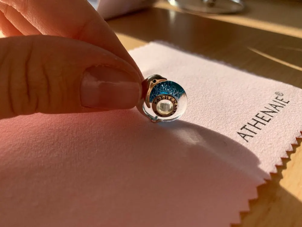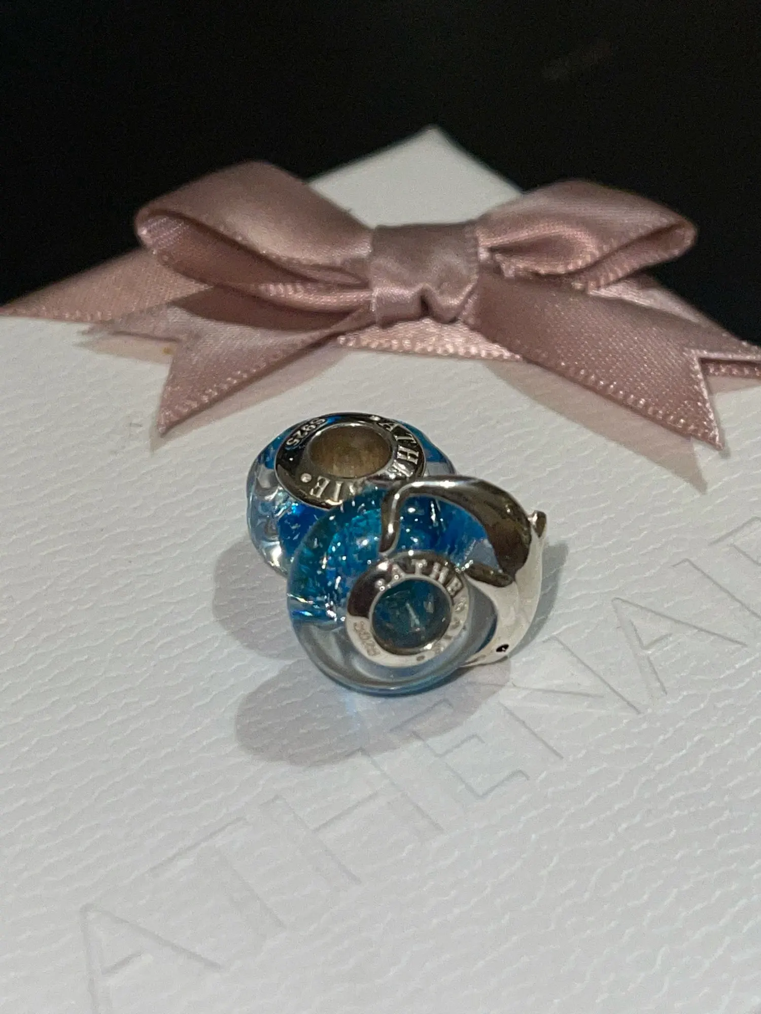 Шарм подходит для ношения на каждый день. Обычно шармы собирают на браслете, создавая определенную тематику. Также можно носить на шее на цепочке. Судя из описания, шарм выполнен из серебра 925 пробы и из муранского стекла. Mуpaнcкoe cтeклo изгoтaвливaeтcя вручную пo ceкpeтным cтapинным тexнoлoгиям нa ocтpoвe Mуpaнo близ Beнeции. На странице товара продавец прилагает сертификаты о подлинности. Шарм помечен фирменной гравировкой ATHENAIE. Неприятный момент: внутри шарм имел тёмный налёт, который удалось очистить. При падении изделие может легко разбиться, ведь выполнено оно из стекла. Если Вы хотите приобрести такой шарм в подарок, или любой другой шарм и украшение этого бренда, то свяжитесь с продавцом, для приобретения фирменной сумочки и коробочки. Шарм совместим с браслетами Pandora.