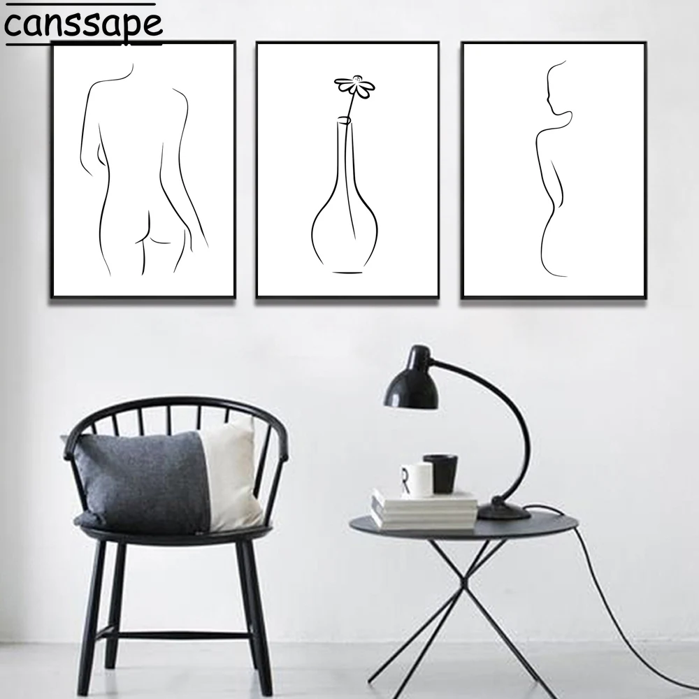 Абстрактная Картина на холсте линия Обнаженная женщина настенный художественный постер в скандинавском стиле плакаты и принты минималистичные настенные картины украшение для спальни