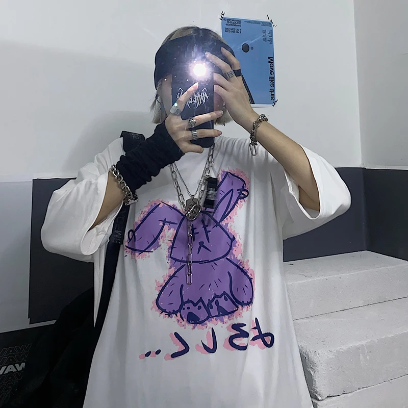 Женская футболка с коротким рукавом, летняя свободная Винтажная футболка в готическом стиле, с мультяшным принтом, в стиле Харадзюку, лето 2019