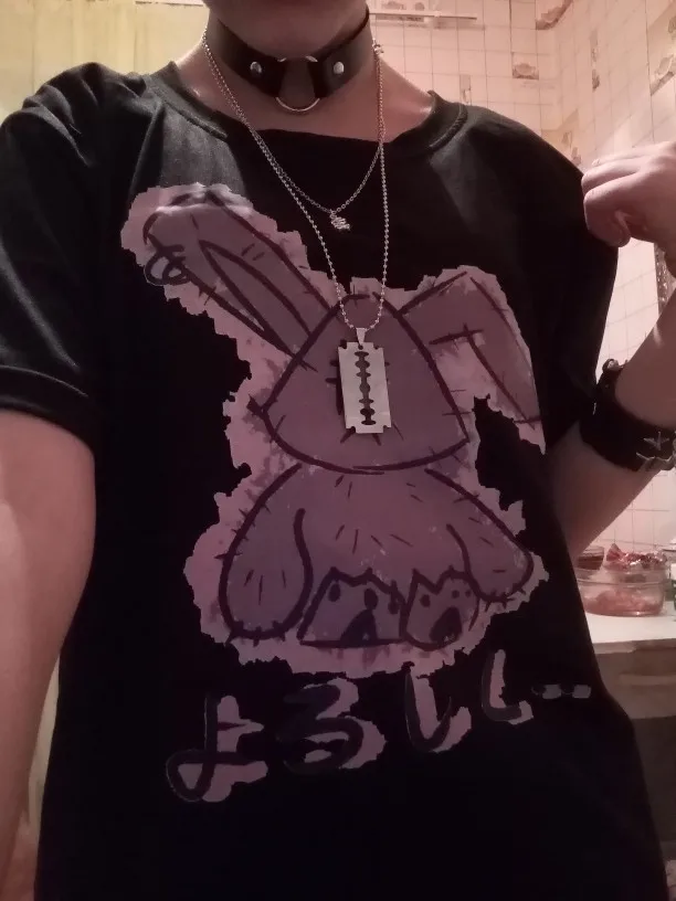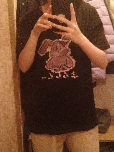 Рубашка стала меньше, чем на картинке Ткань очень легкая, а принт кролика выглядит как бумага с пластиком :(