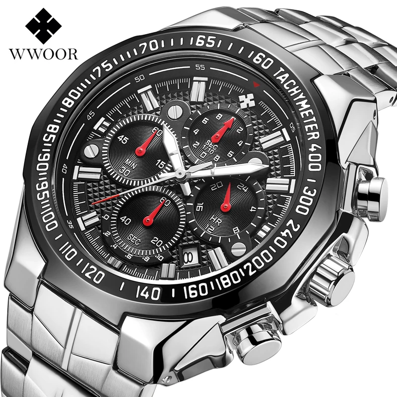 Reloj Hombre 2020 часы для Для мужчин WWOOR лучший бренд класса люкс, наручные часы, черный большой циферблат часы Для мужчин s спортивные кварцевый хронограф мужские Наручные часы коробка