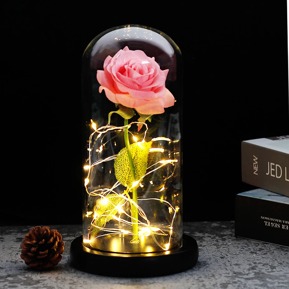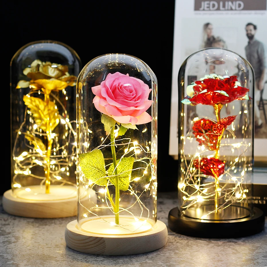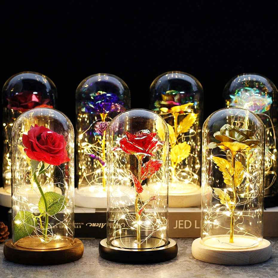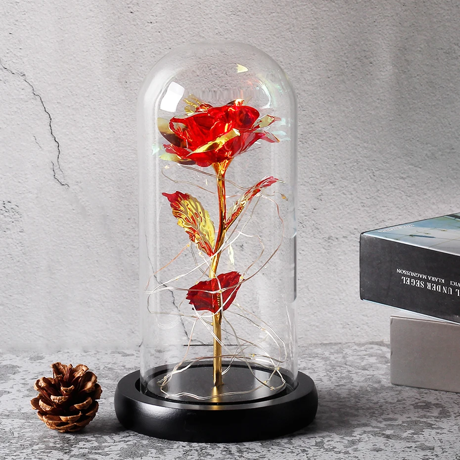 Товар: украшение для дома на свадьбу, День Святого Валентина, стеклянная крышка, свежий сохраненный цветок розы, красивая красная розовая роза