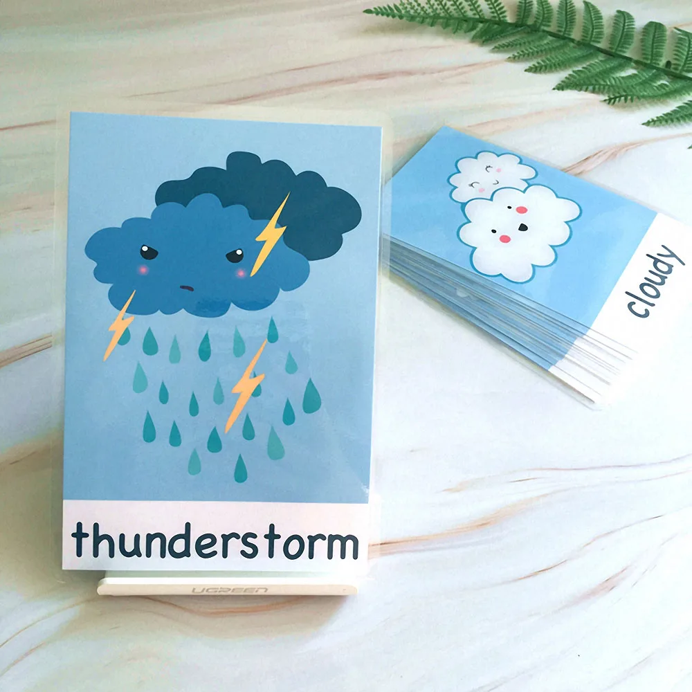 15 шт., погодные флэш-карты, водонепроницаемые, Монтессори, английс...