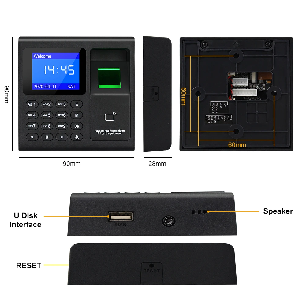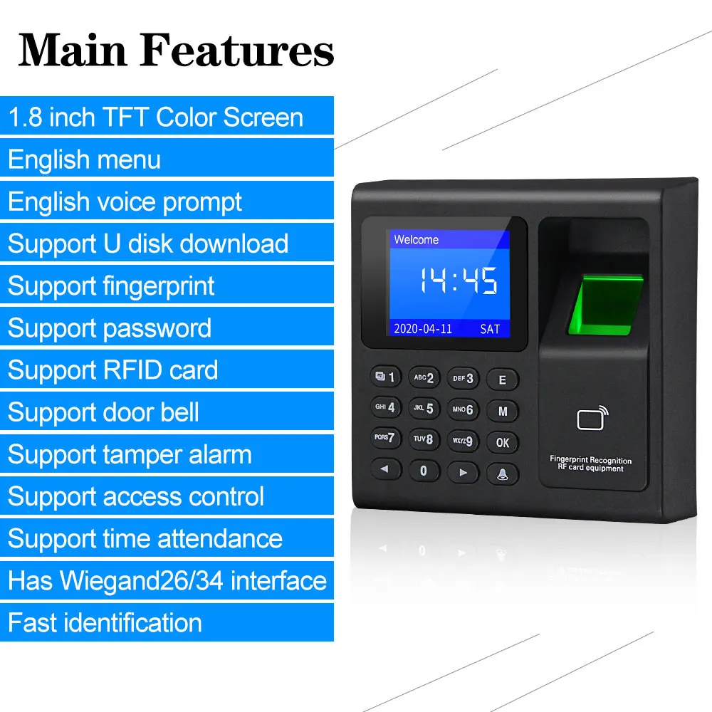 Также может использоваться как устройство для измерения времени отпечатка пальца, можно загрузить данные о посещаемости с U-диска.