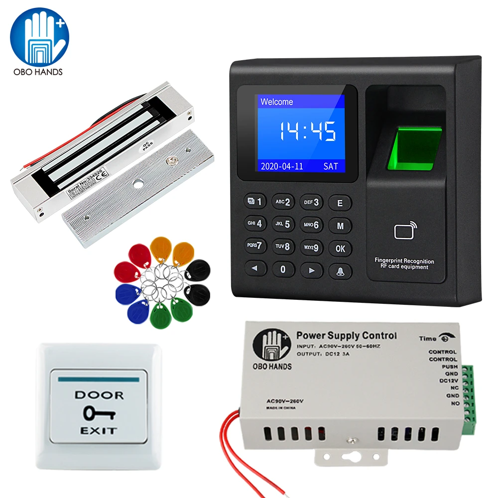 Биометрическая клавиатура для контроля доступа RFID, система контроля допуска к двери отпечатков пальцев, блок питания, Электрический магнитный замок и ключи