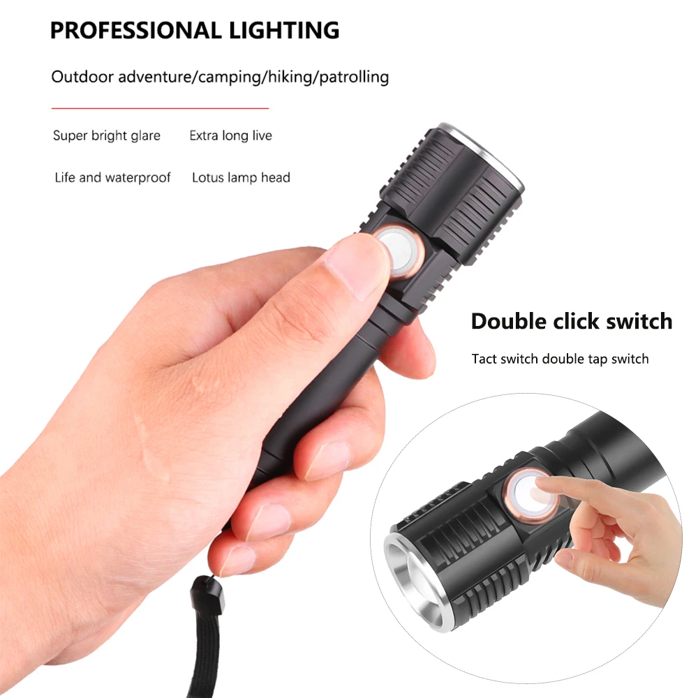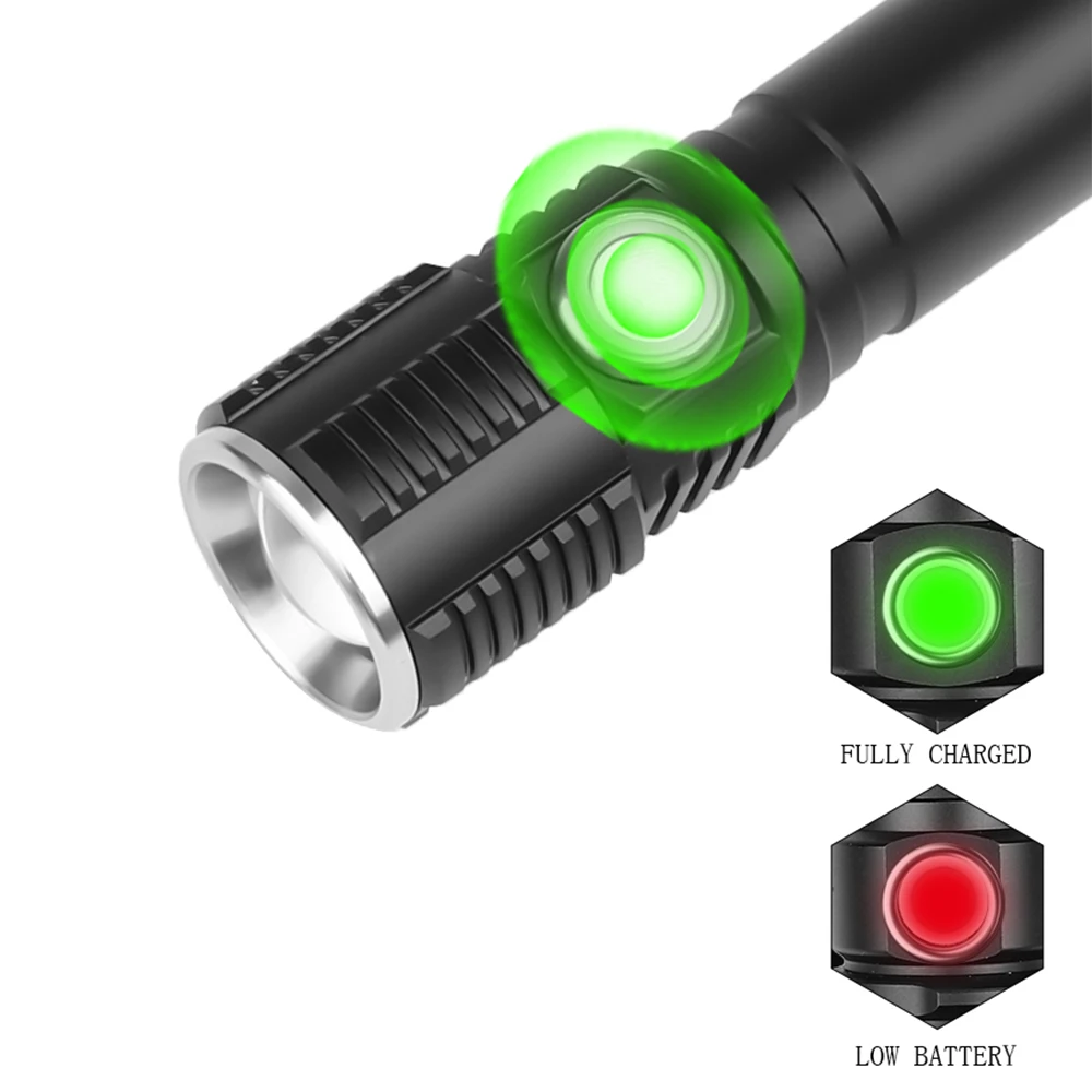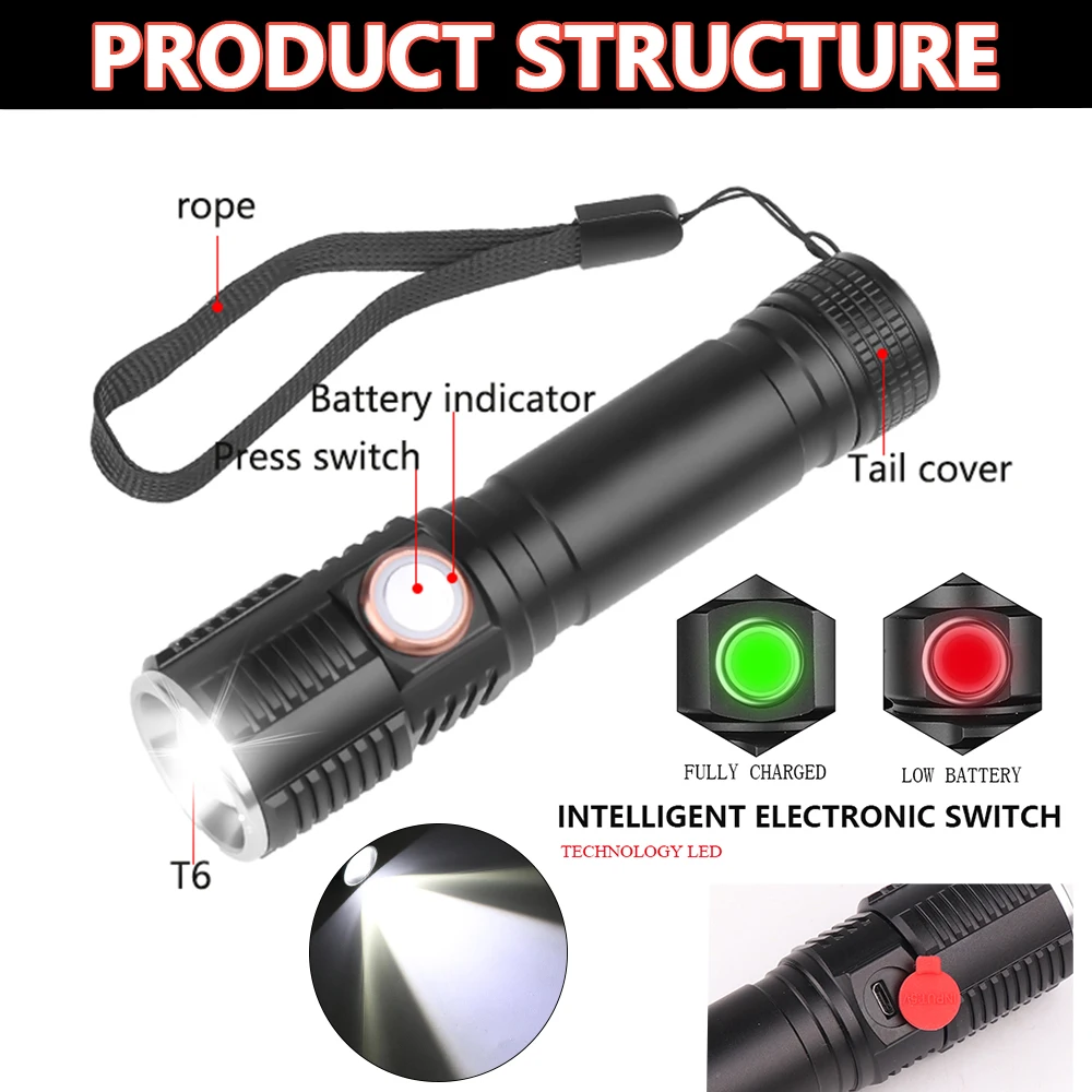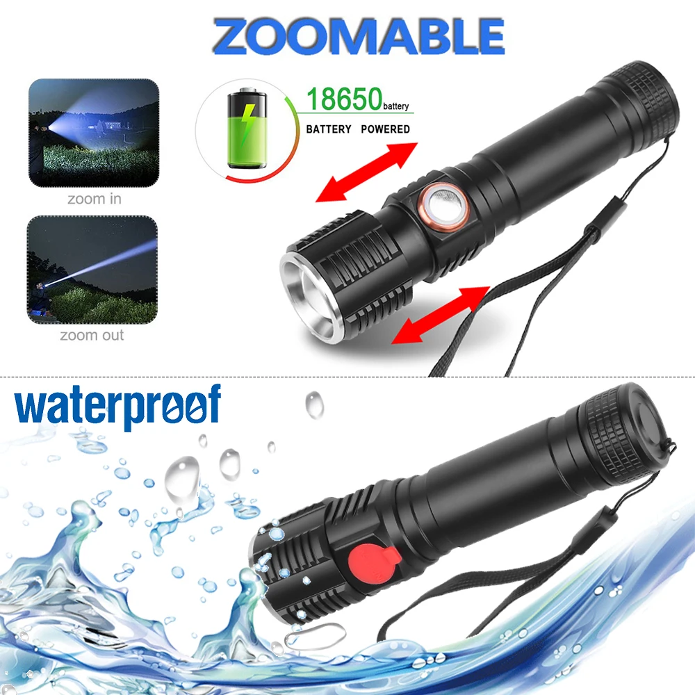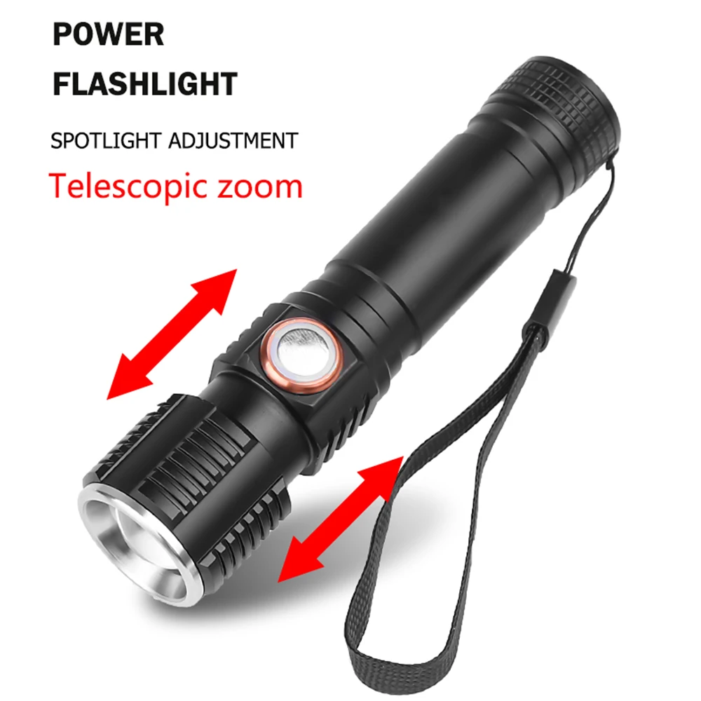 Сверхъяркий Многофункциональный светодиодный фонарик с функцией масштабирования, перезаряжаемый через USB, водонепроницаемый светодиодный фонарик с батареей 18650