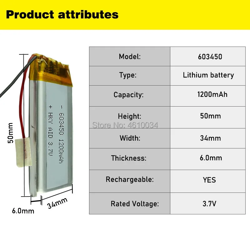 Перезаряжаемый литий-полимерный аккумулятор 3,7 в вольт 603450 1200 мАч, литий-ионный аккумулятор, внешний аккумулятор для телефона, дрона, PSP