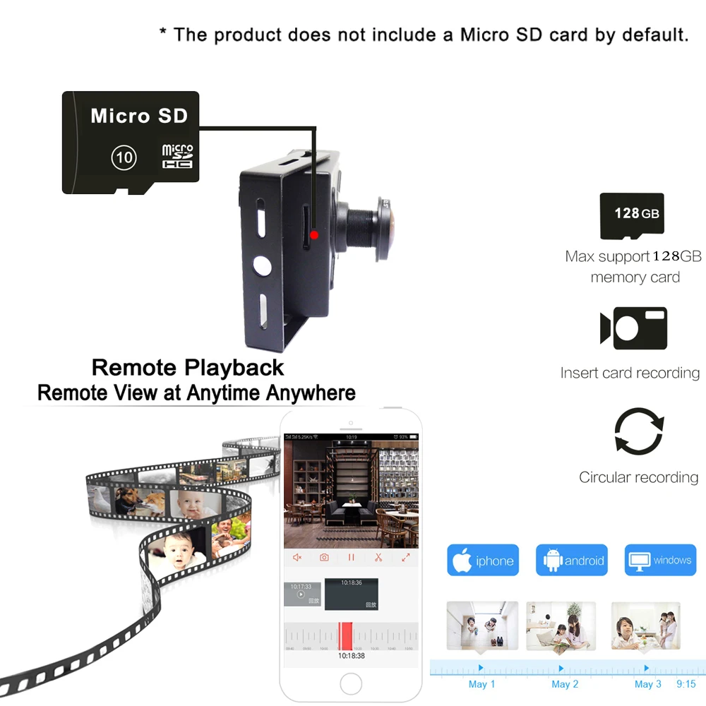 Поддержка записи видео и звука через карту Micro SD или компьютер, вы можете удаленно воспроизводить видео и звук (история) через мобильное приложение.