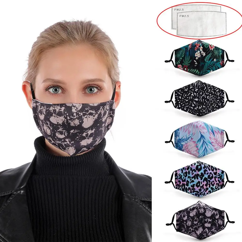 Многоразовая маска для лица с цветами, моющаяся защитная маска с фильтром PM2.5, Пылезащитная маска для лица, Ветрозащитная маска для рта