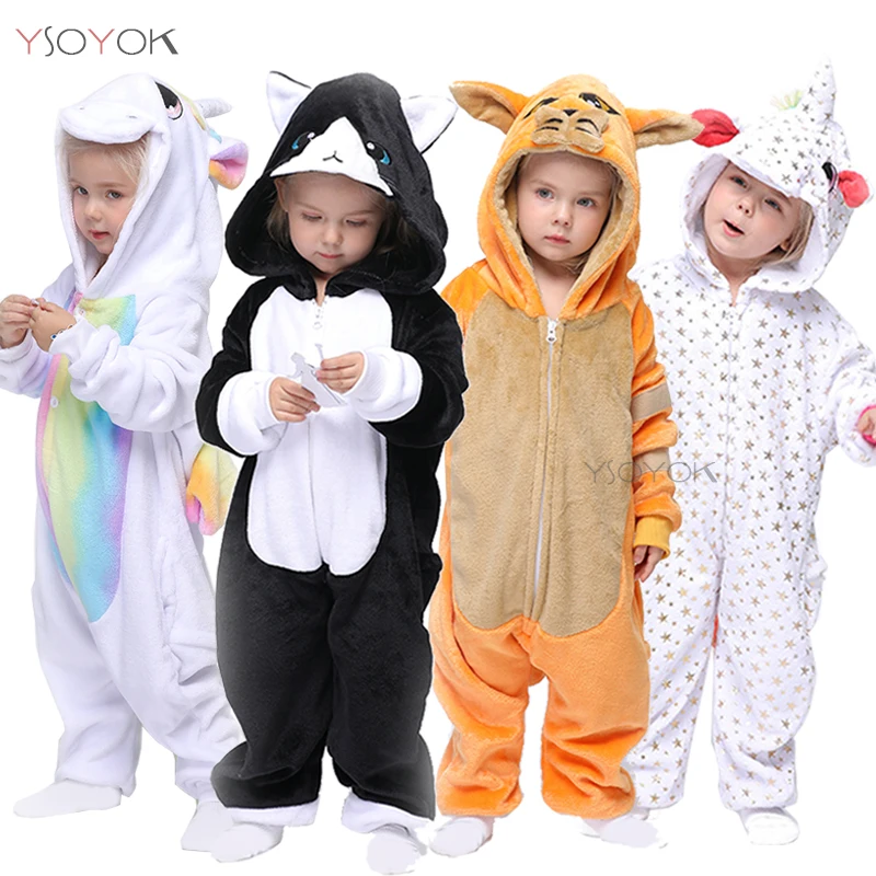 Зимние кигуруми в виде единорога, детские пижамы для мальчиков и де...
