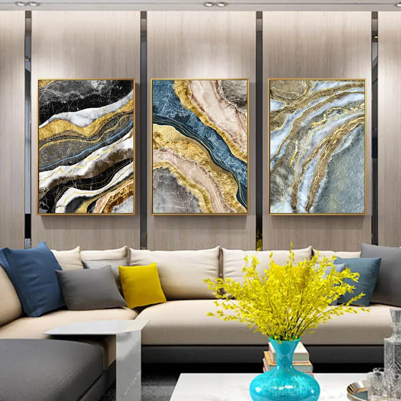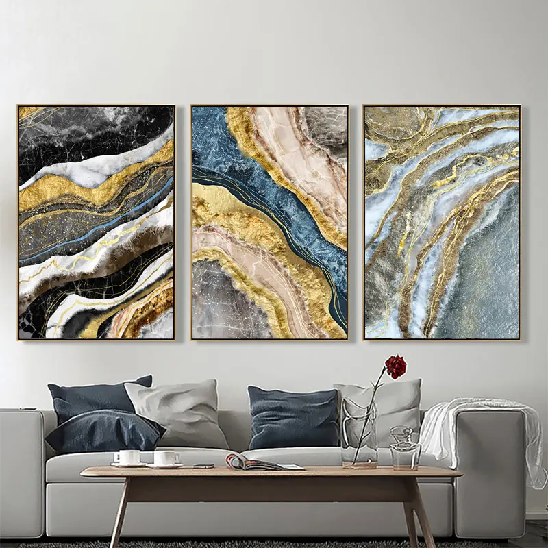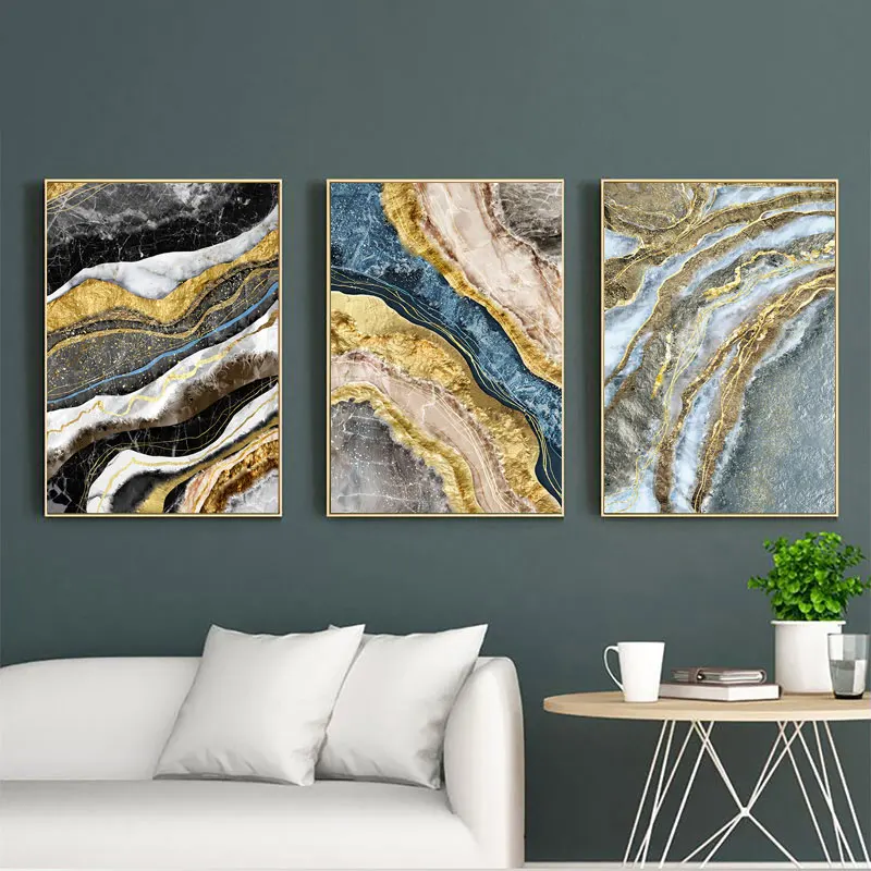 Абстрактный Золотой Серый холст, плакат, печатный геометрический цв...