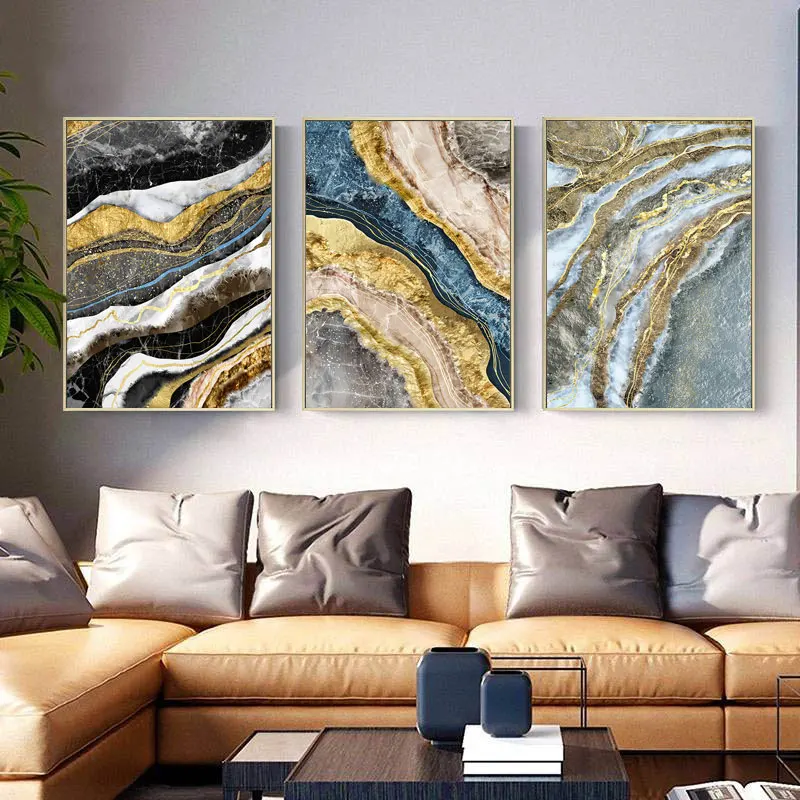 Абстрактный геометрический постер на холсте с принтом золотого цвет...