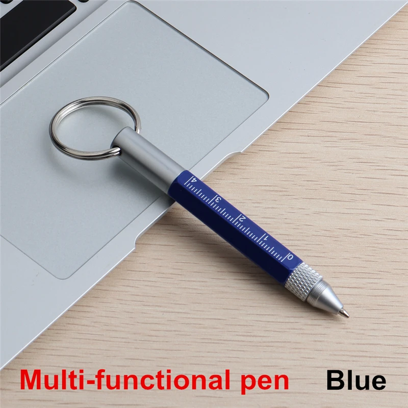 Многофункциональная ручка, металлическая ручка, шариковая мини-ручка-отвертка, линейка, многофункциональные пряжки для ключей, черные, голубые чернила