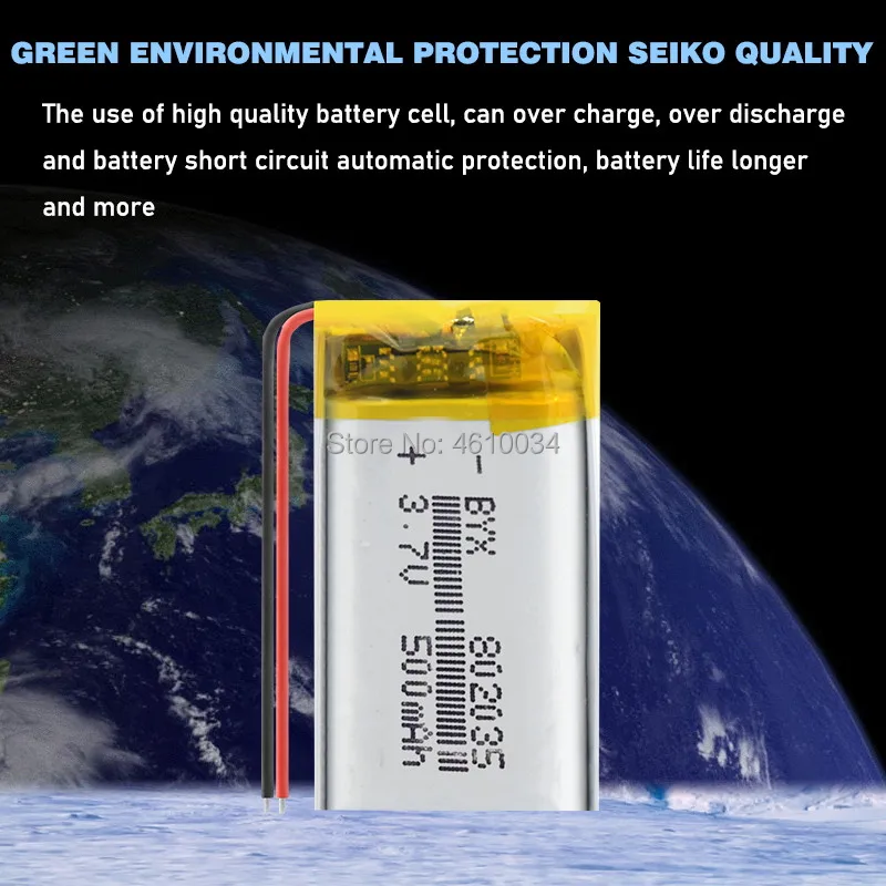 3,7 в 500 мАч 802035 полимерный литий-ионныйлитий-ионный аккумулятор для MP3 MP4 игрушек DVR Mio mivue 536 mio 518 зеркальный видеорегистратор dvr